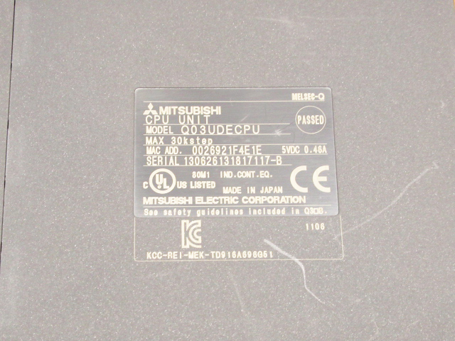 正常動作品 Mitsubishi 三菱電機 Q03UDECPU CPUユニット シーケンサ 管理7S1115F-C6
