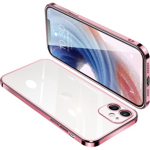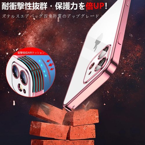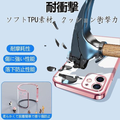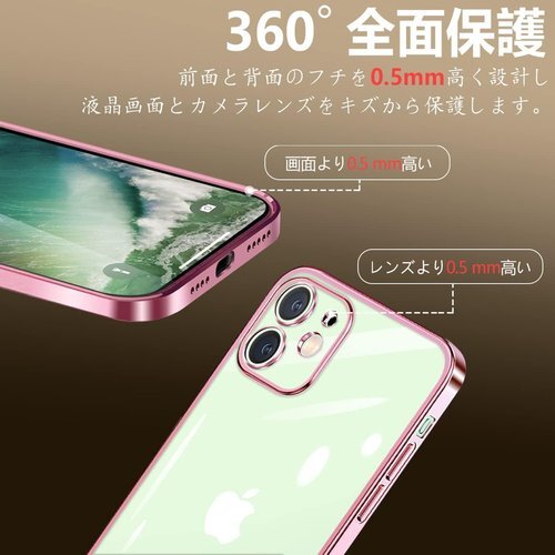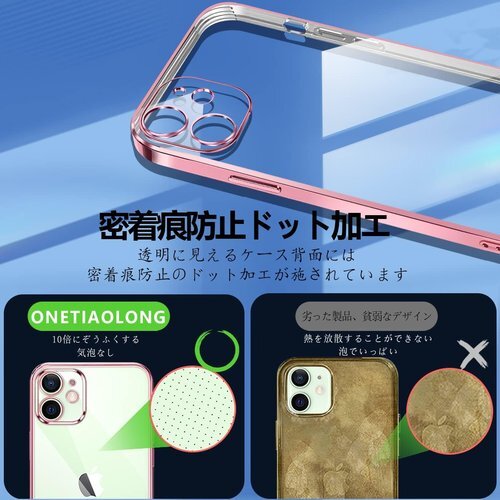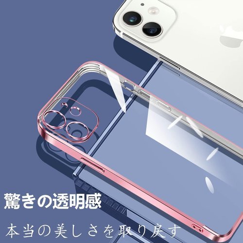iPhone12 ケース クリア アイフォン12 カバー 透明 スマホケース 耐衝撃 軽量 メッキ加工 TPU 薄型 ストラップホール付き 滑り止め 落下防止 ローズゴールド 538
