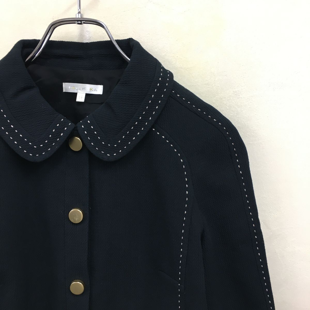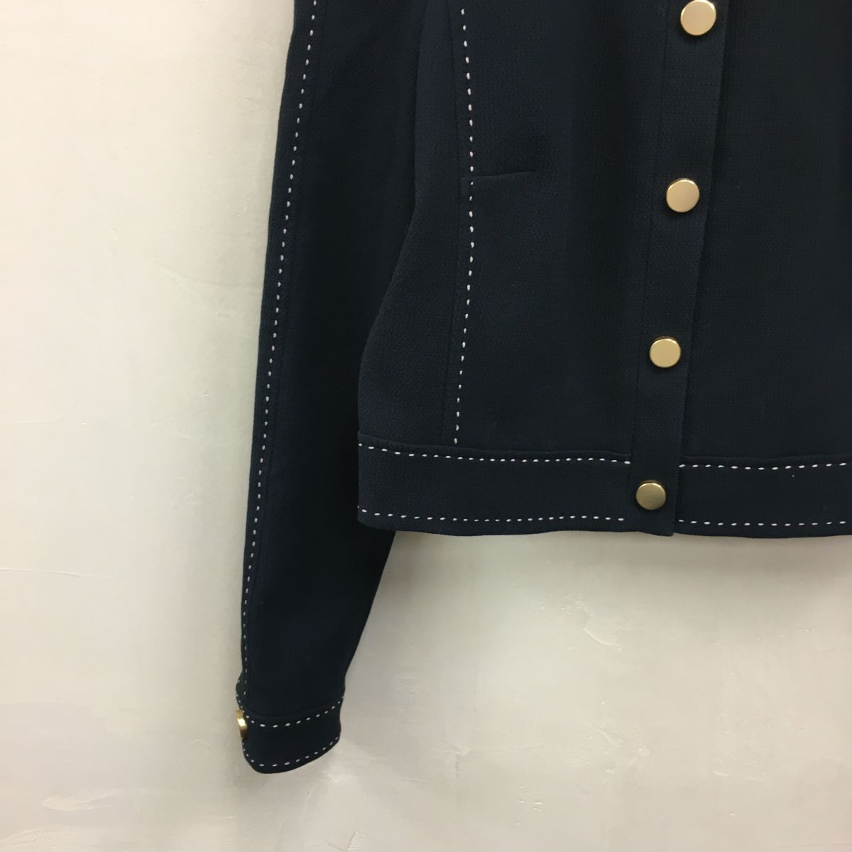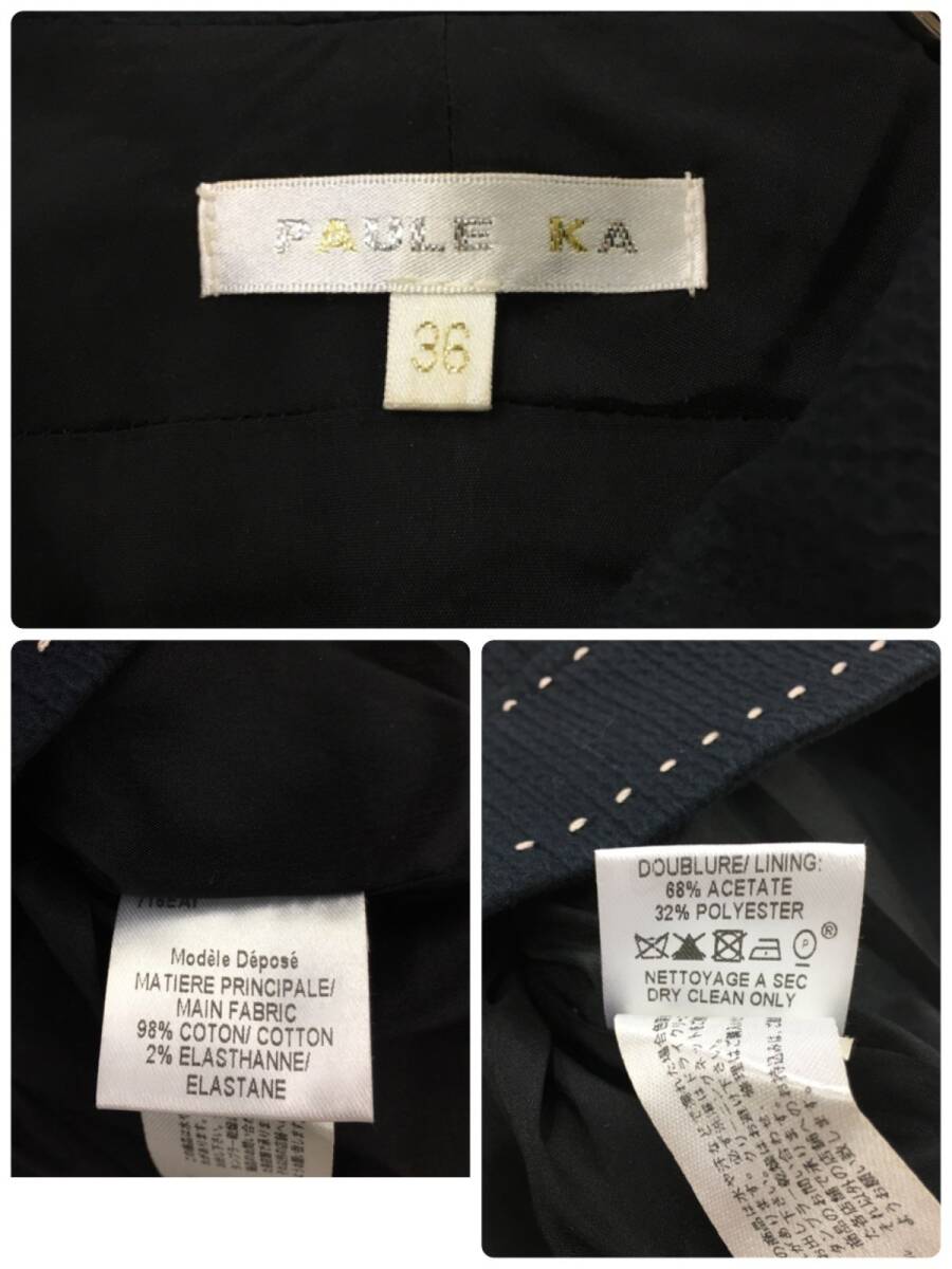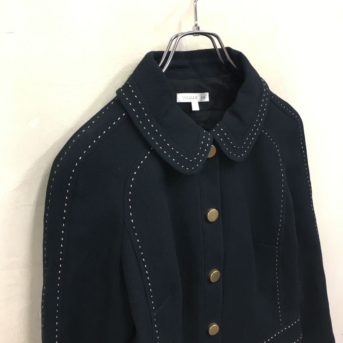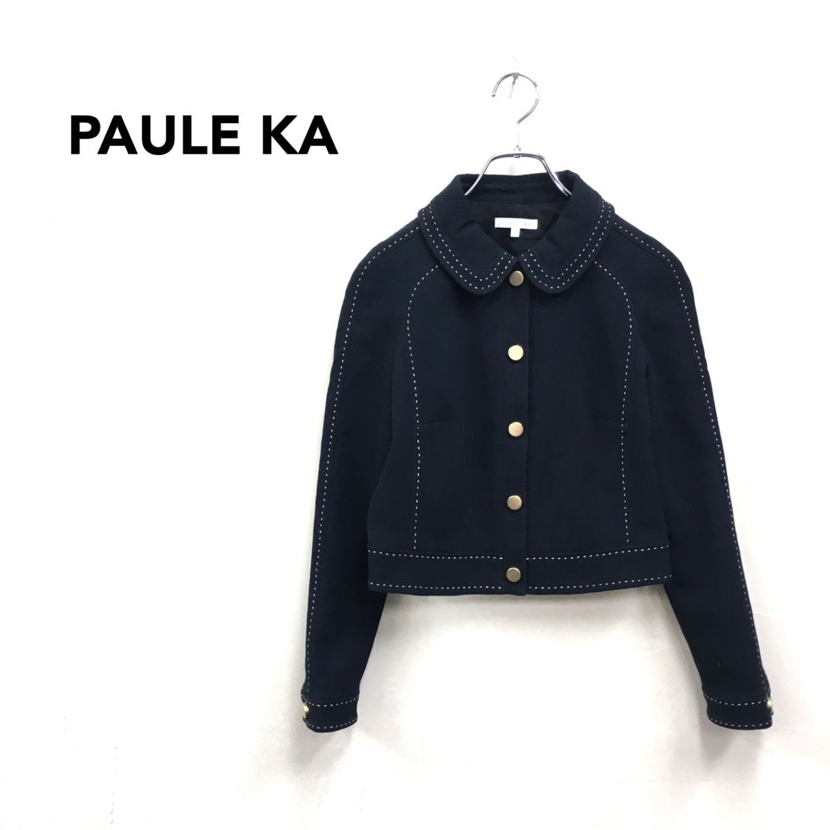 2N1873-G◆ PAULE KA ポールカ ステッチデザインコンパクトコットンジャケット スモールカラー 金スナップボタン ◆ size36 ネイビー 綿