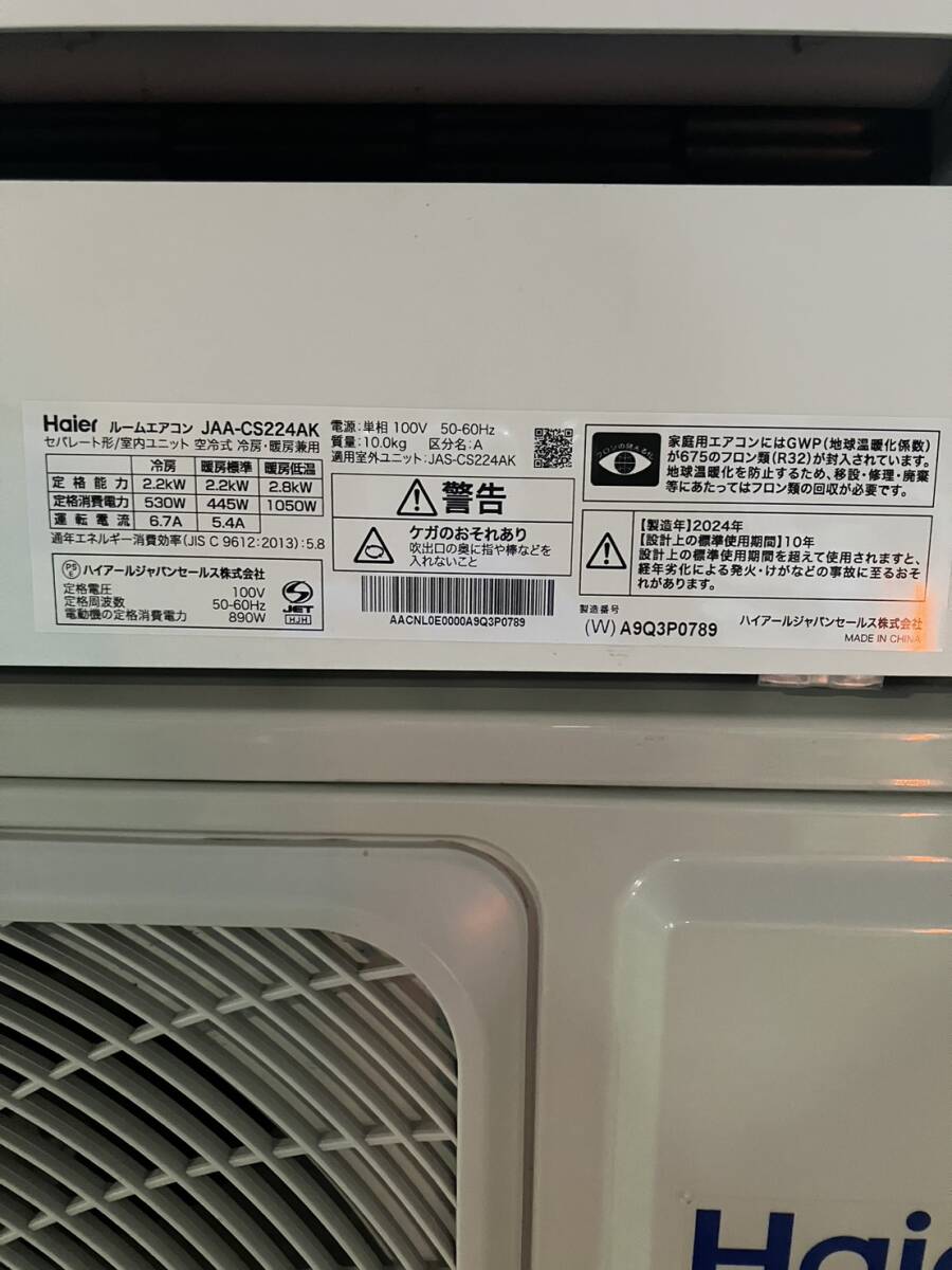 | Haier/ハイアール/Wフリーズ洗浄/ルームエアコン/冷暖房/6畳/2024年製/内機JAA-CS244AK/外機JAS-CS224AK/1104e4 | ||||||||||||||||||||