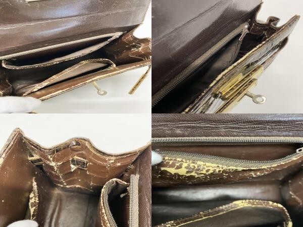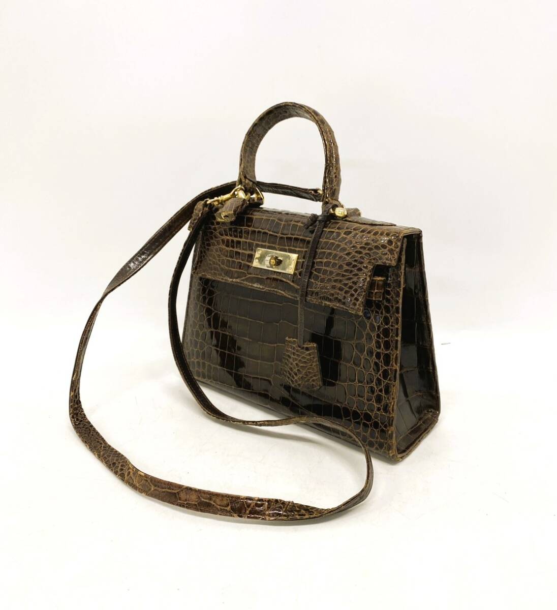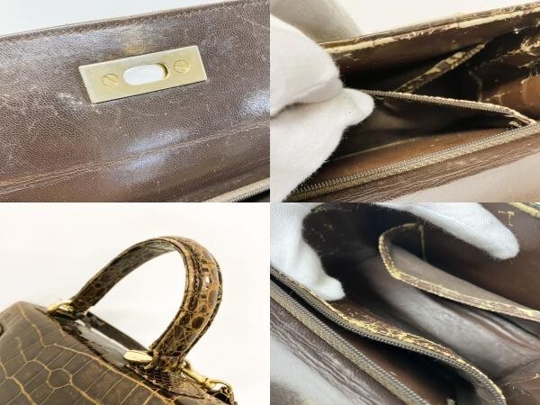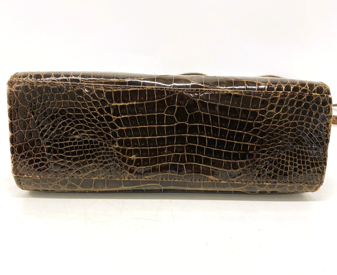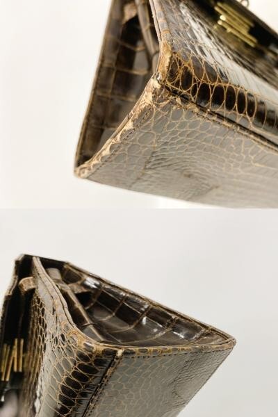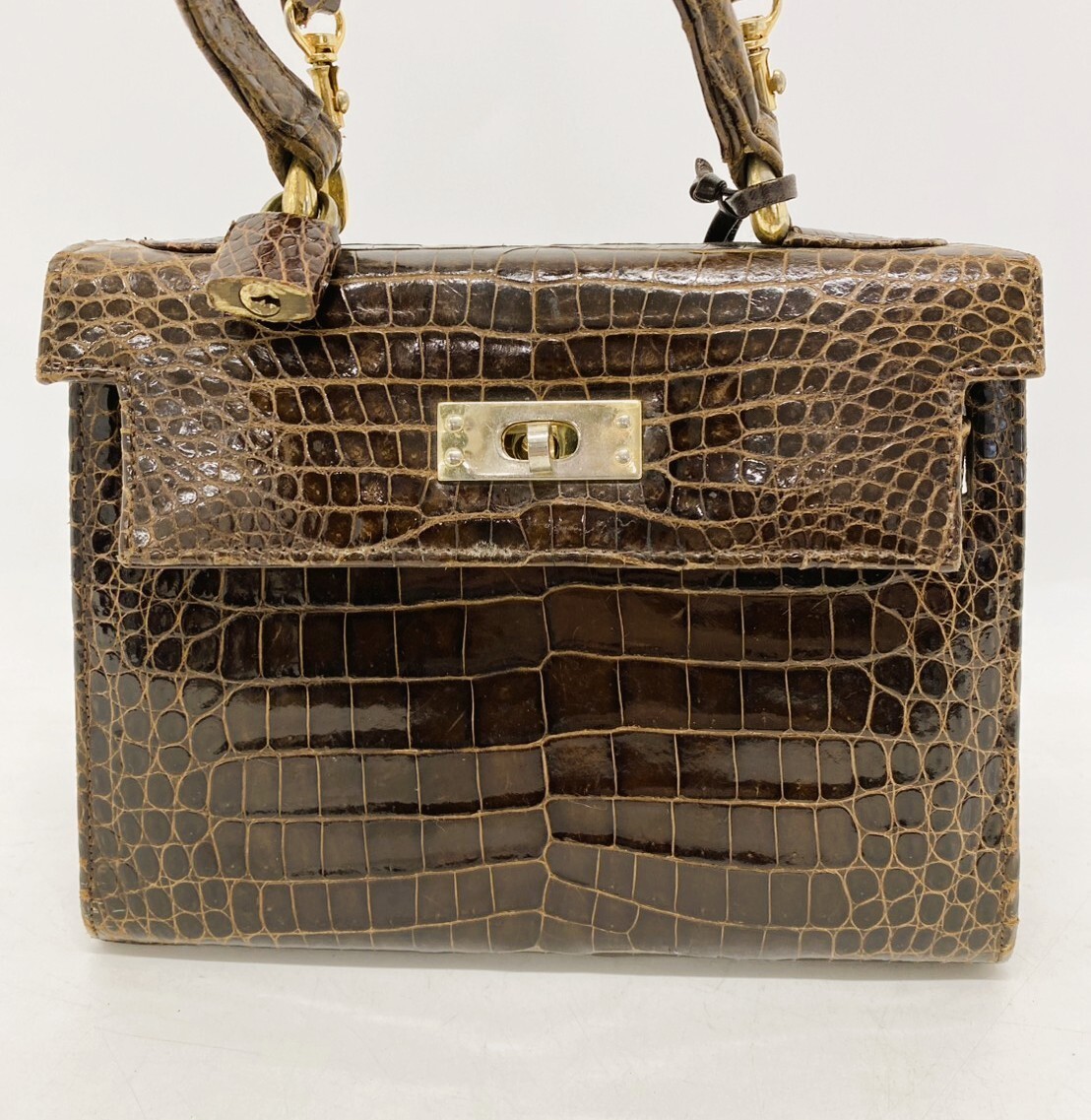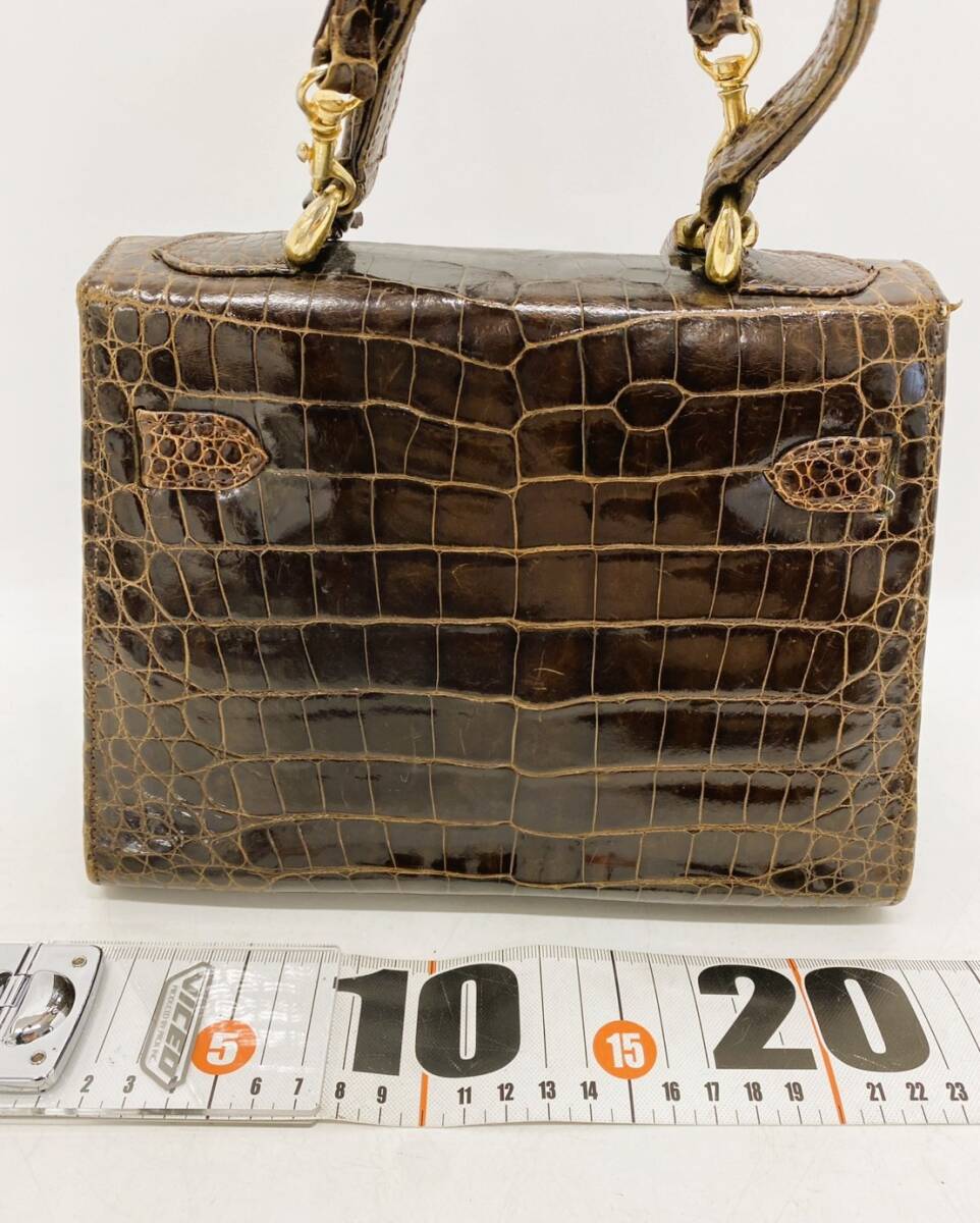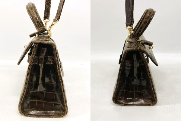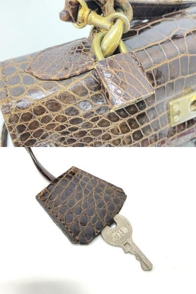 ha4223-6 186 CROCODILE クロコダイル ケリー型 ターンロック ゴールド金具 南京錠 鍵付き ハンドバッグ ショルダーバッグ 2WAY ブラウン系