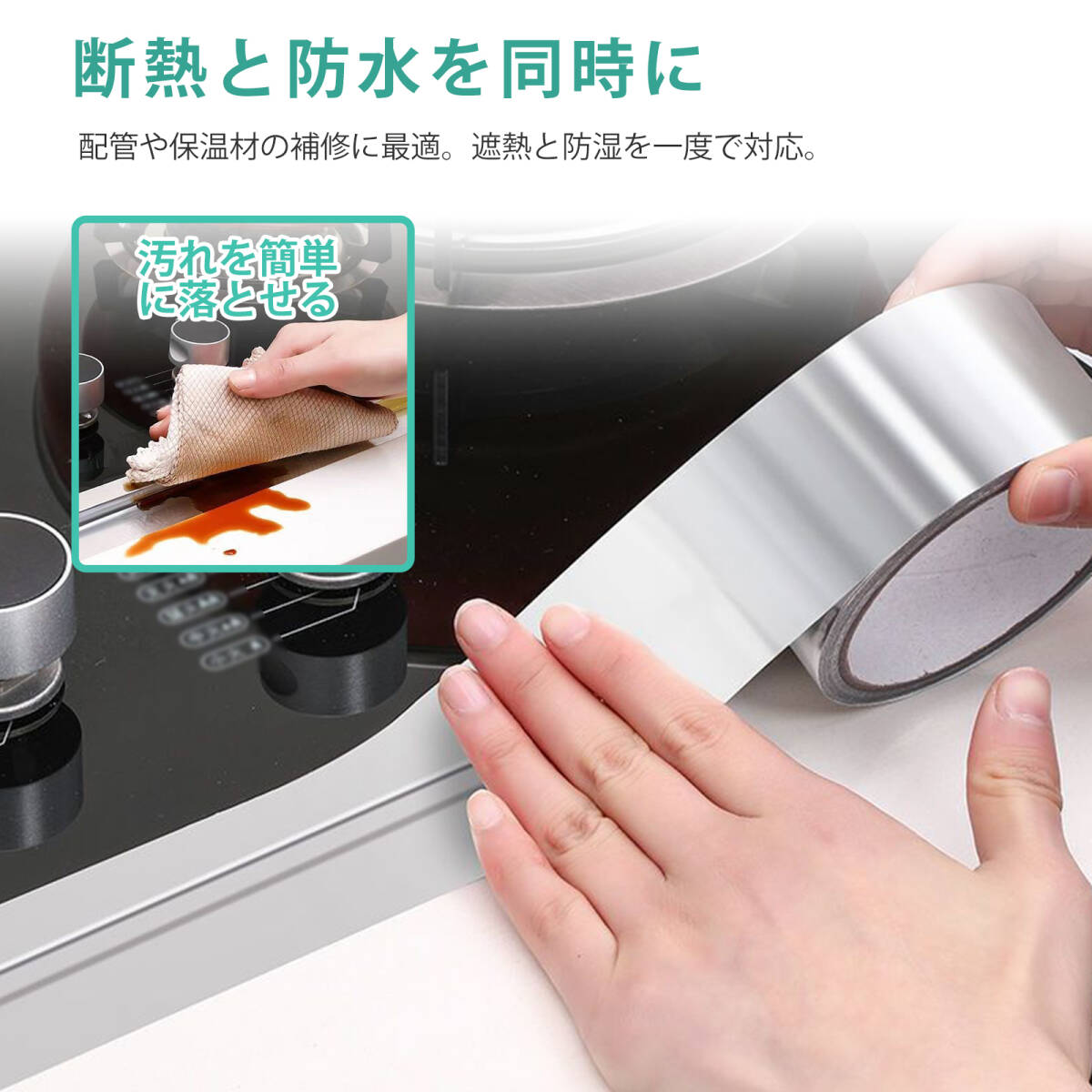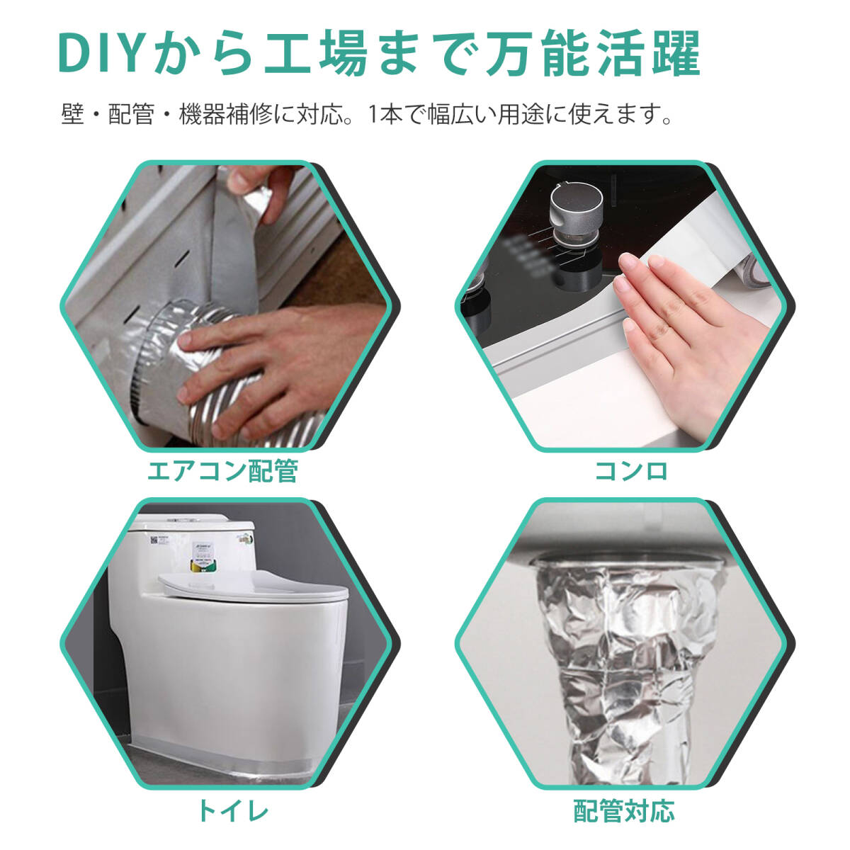 | この商品について | 【優れた耐熱性|高温環境でも安心使用】:耐熱アルミ箔を採用し、長時間の高温環境でも変形・剥がれなし。地暖管やエアコンダクトなど、熱を扱う場所に最適です。 【強力粘着力&しっかり密着】:高品質オイル系粘着剤を使用。滑らかな金属面や凹凸面にもピタッと密着し、剥がれにくく長持ちします。 【防水・防塵・密封効果抜群】:テープが空気・蒸気・ホコリの侵入を防ぎ、配管や接続部をしっかり保護。屋内外問わず使用可能です。 【手で簡単にカット可能|作業効率アップ】:ハサミ不要で手でスムーズに切れる設計。DIYや工事現場でも素早く作業できます。 【幅広い用途|家庭から業務用まで】:家庭の地暖管保温、エアコンダクトの断熱、配管防水、車の遮熱修理、工場の断熱補修など、あらゆる場面で活躍。 |
