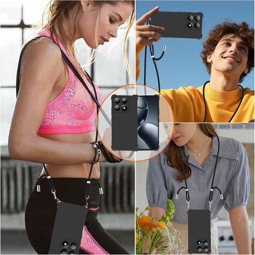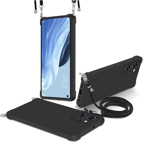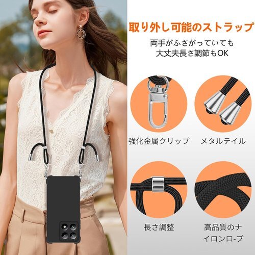 OPPO Reno9 A ケース 耐衝撃 スマホケース 肩掛け 斜めかけ 縄掛けケース 縄掛け OPPO Reno7 A OPG04 TPU カバー ストラップ付き 軽量 四隅がエアクッション構造・超軍用規格 落下防止 柔軟で変形しない 縄掛け-ブラック 645