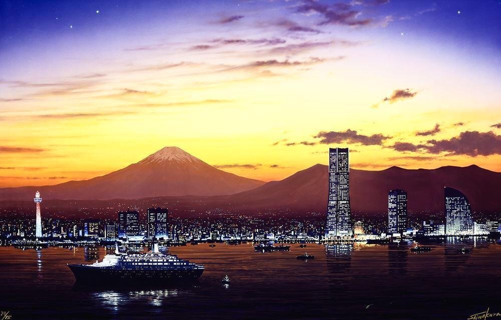 【真作】【WISH】島倉仁「ゲートウェイイースト 横浜」シバクローム 手彩色 約25号 大作 直筆サイン   〇映画・CM界活躍 #25112190