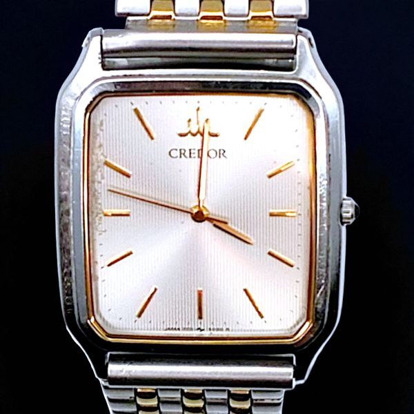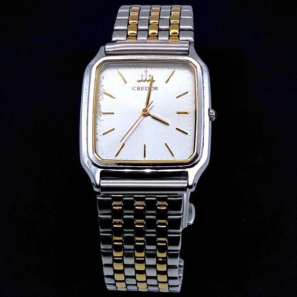 SEIKO CREDOR セイコー クレドール スクエア 7771-5030 クォーツ式腕時計 シルバ- ゴールド ステンレススチール メンズ