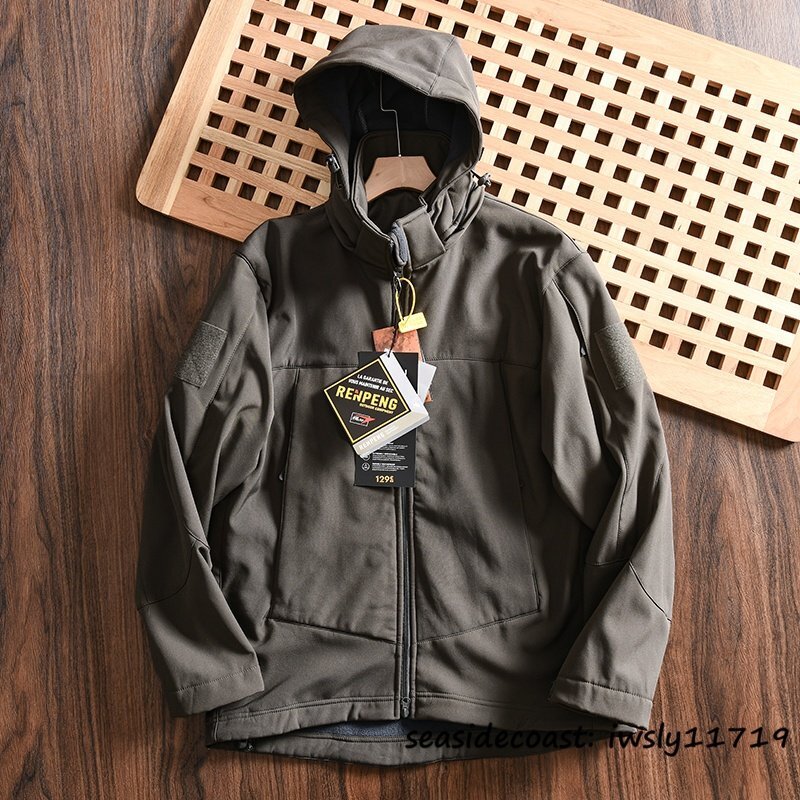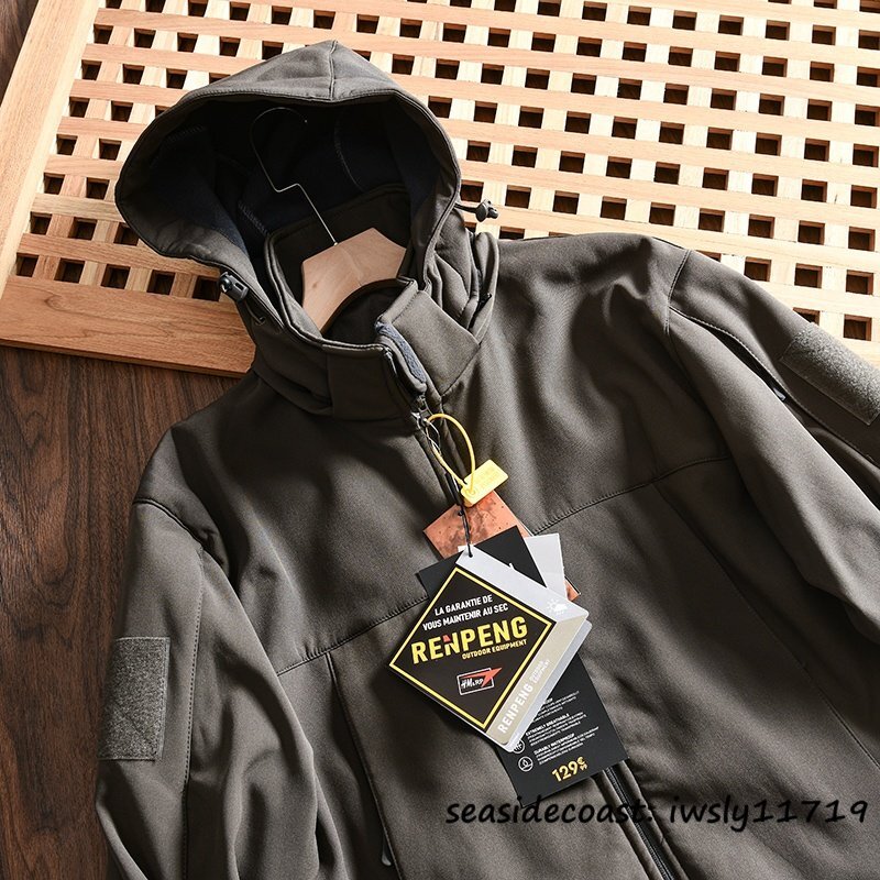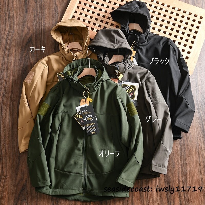 フリースジャケット メンズ フード付き マウンテンパーカ ソフトシェル ブルゾン 裏起毛 厚手 撥水 防寒 防風 秋冬 ブルゾン グレー 4XL