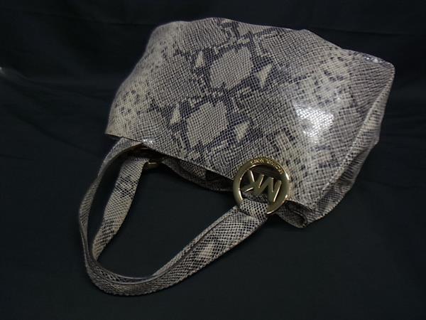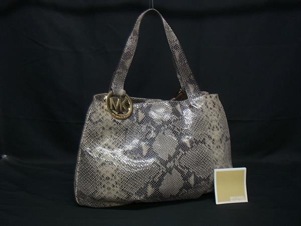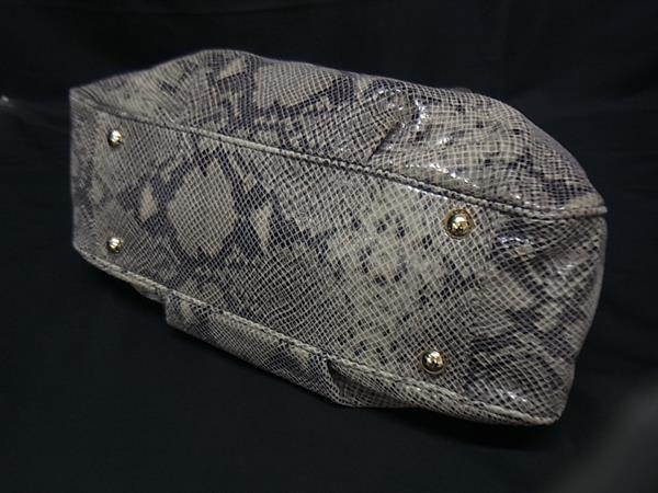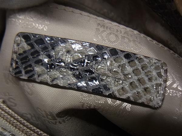 1円 ■美品■ MICHAEL KORS マイケルコース ヘビ柄 パイソン型押しレザー トートバッグ ハンドバッグ レディース ブラック系 FU6451
