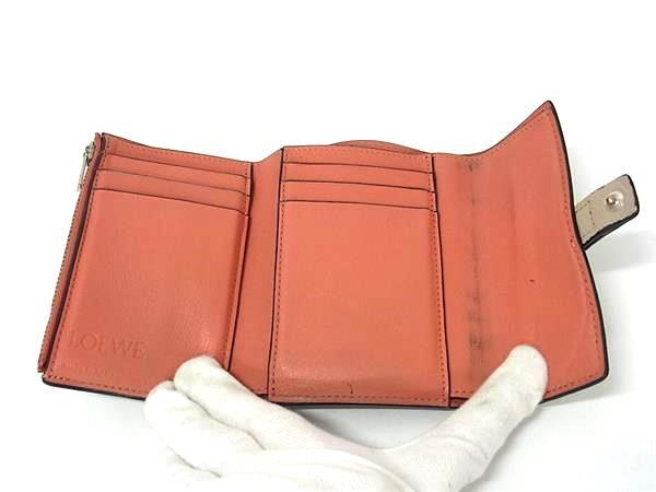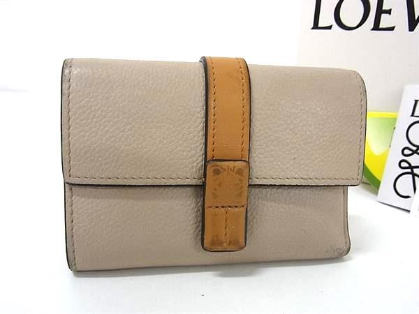 1円 LOEWE ロエベ アナグラム スモール バーティカル レザー 三つ折り 財布 ウォレット 札入れ 小銭入れ ベージュ系 GD0138