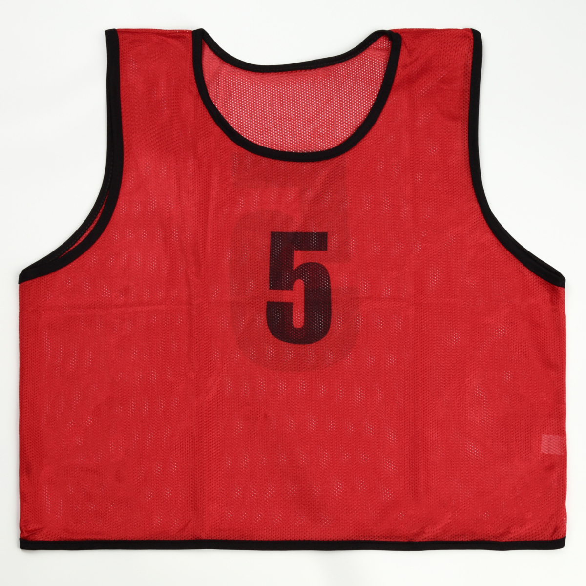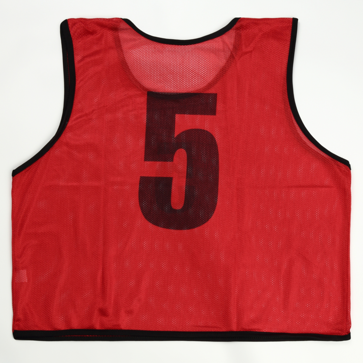 新品! 練習・試合に小中学生~女性用ビブス1番から5番 5枚セット 赤 レッド ゼッケン