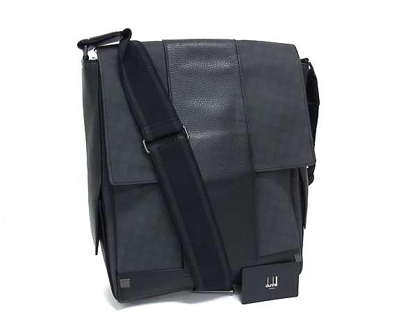 1円 dunhill ダンヒル ディーエイト PVC×レザー クロスボディ ショルダーバッグ 斜め掛け 肩掛けかばん メンズ ブラック系 GD0021