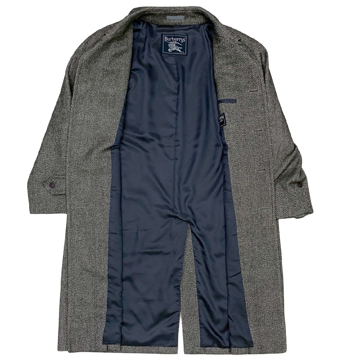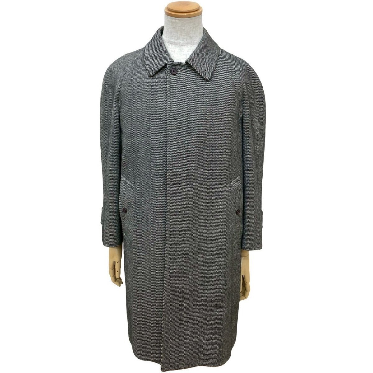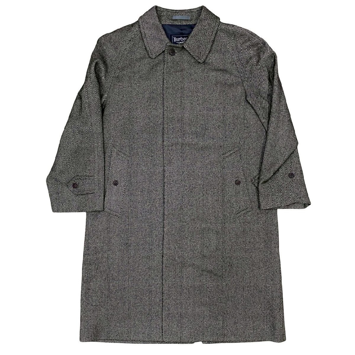 Burberrys バーバリーズ ヴィンテージ チェック 柄 ウール ポリエステル ステンカラー ロングコート メンズ ブラック グレー 21464