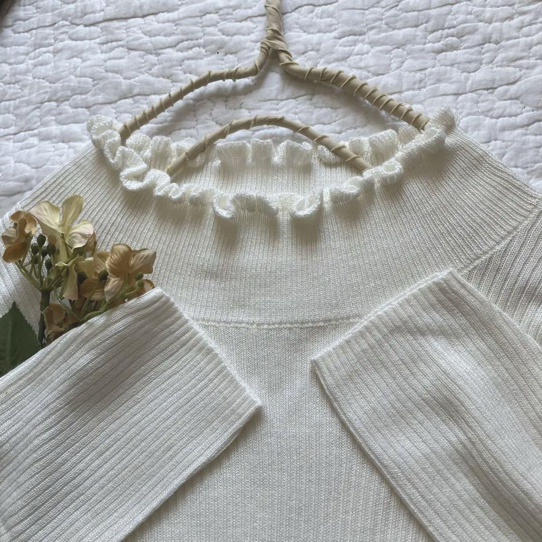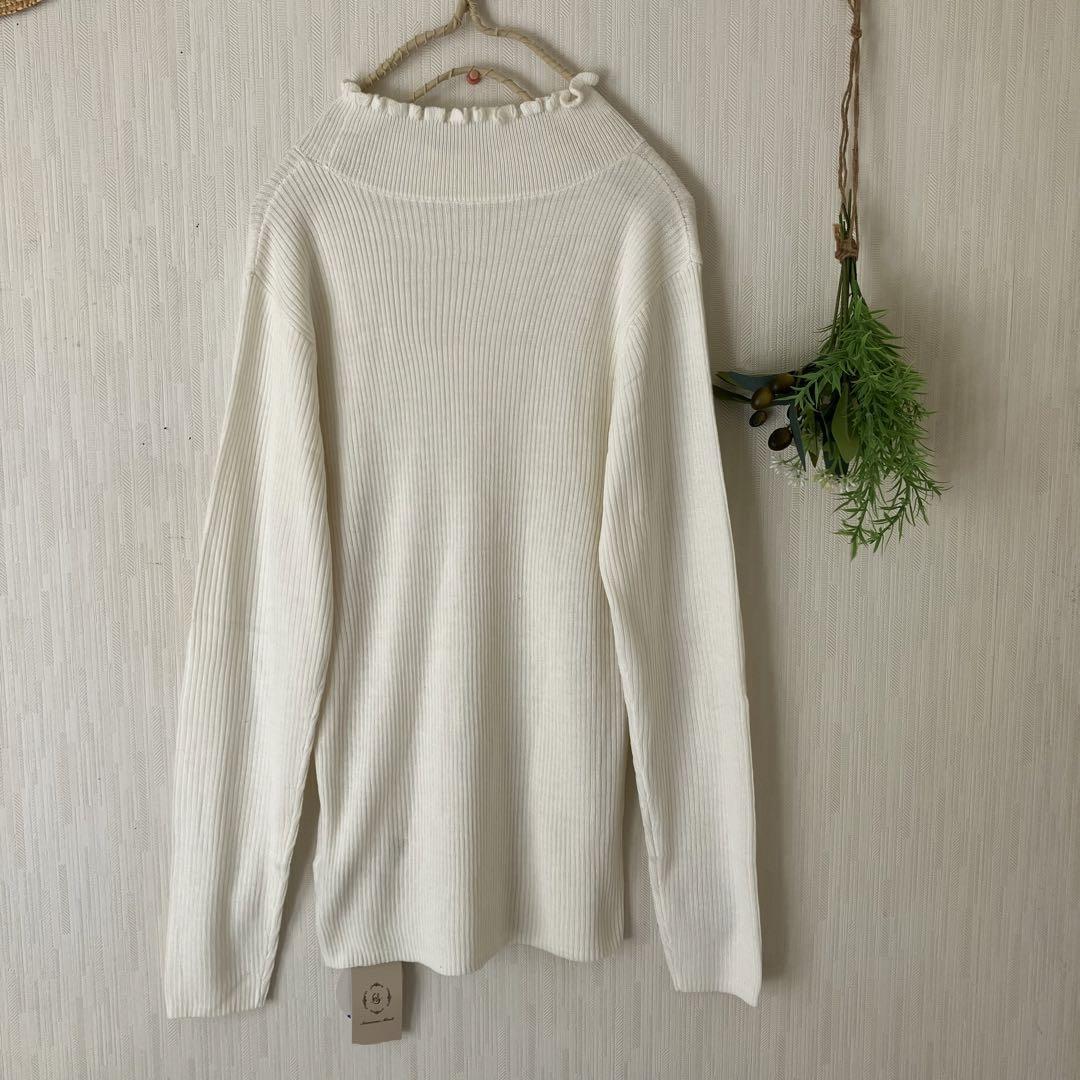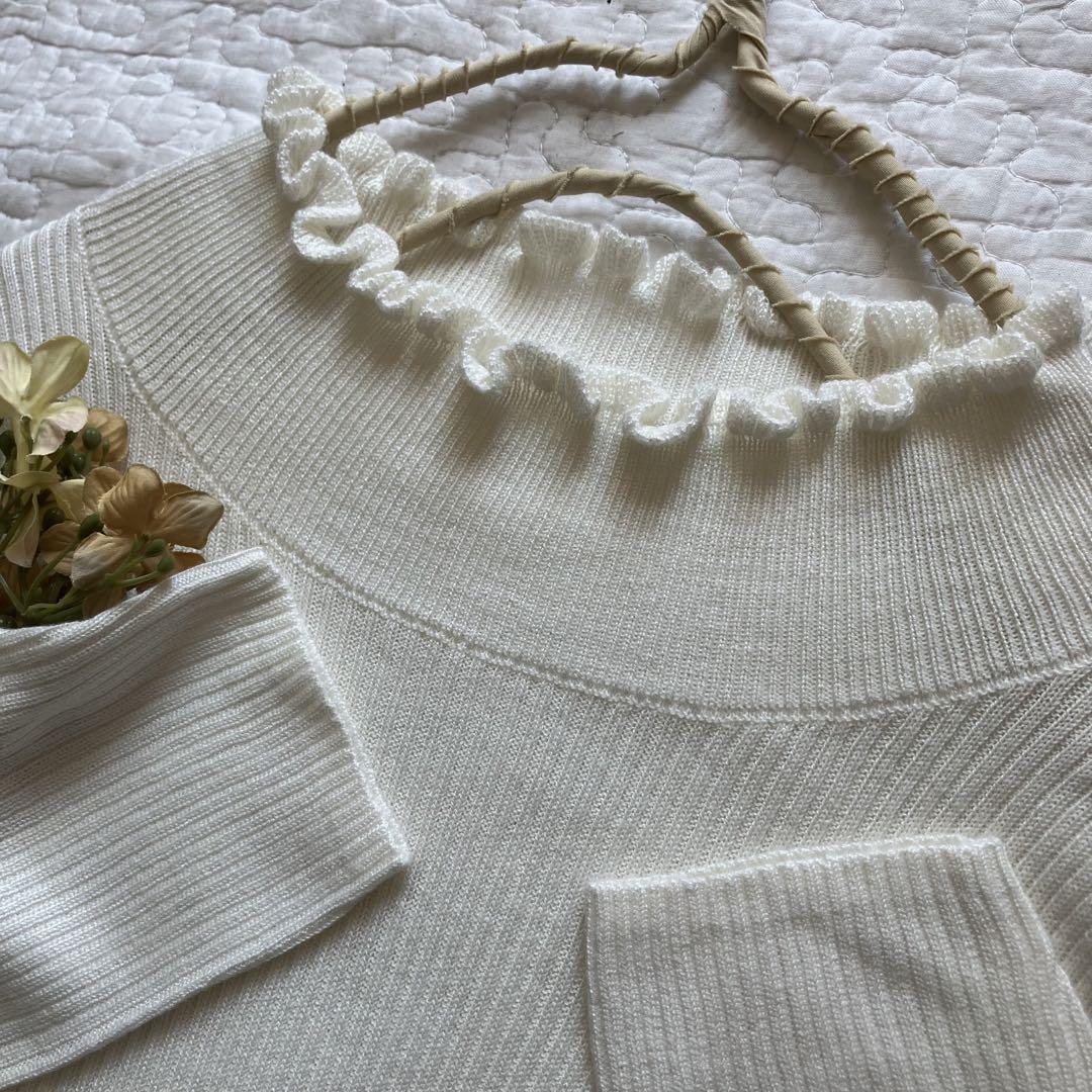 フリルを加えたタートルネックが上品で可愛らしいリブニット。