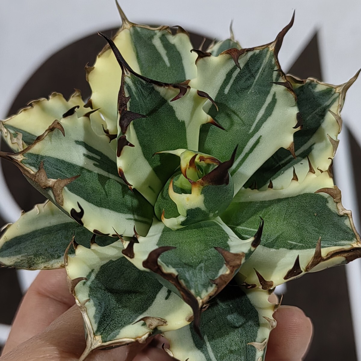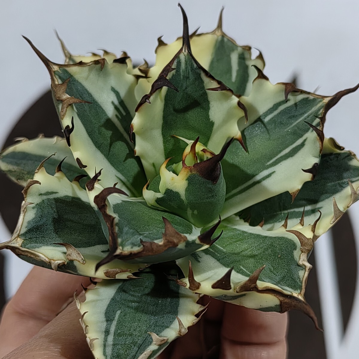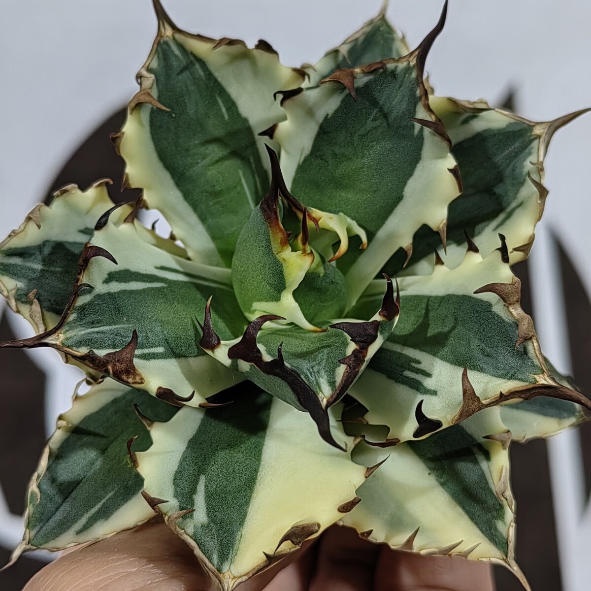 209【上澳園芸】アガベ チタノタ 姫巌竜錦 白覆輪斑 鮮明錦 (永久斑) 希少錦 特選良質株 LED管理株