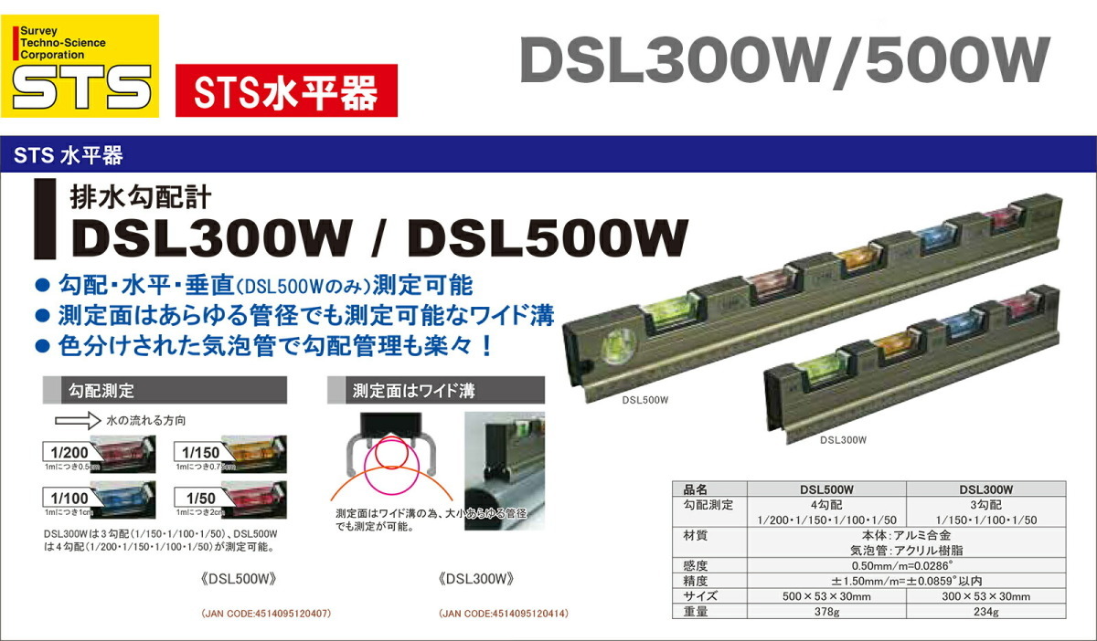 〈STS〉排水勾配計 DSL500W JAN:4514095120407