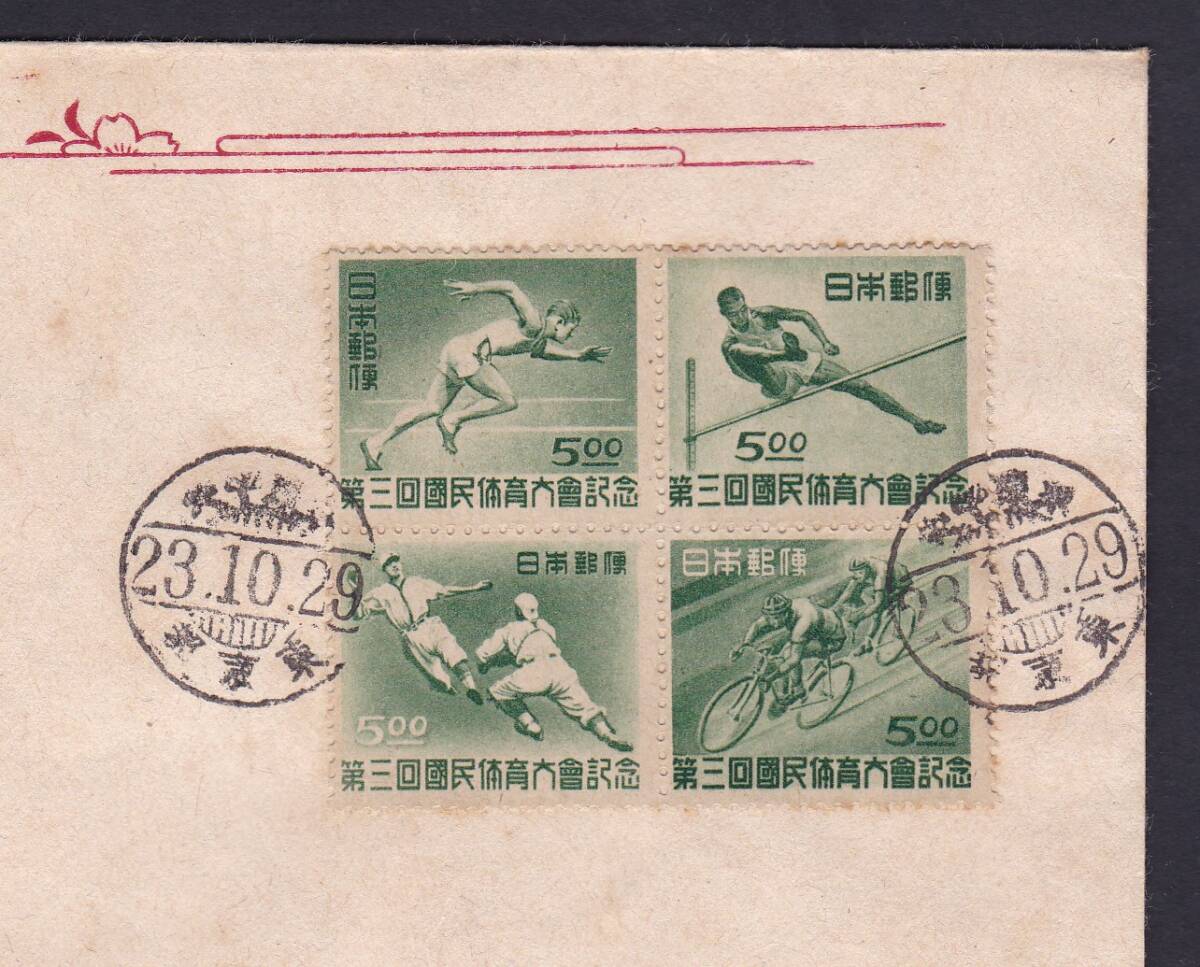 | 第3回国体秋季 4種田型貼 初日カバー 櫛型印 東京中央 23.10.29 |