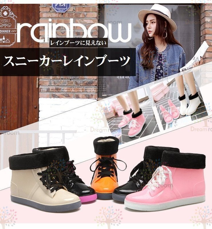お洒落☆スニーカー レインブーツ K-379【24.5cm】長靴 レディース 女の子 雨靴 梅雨