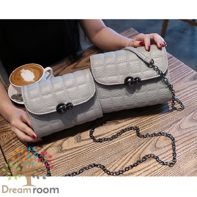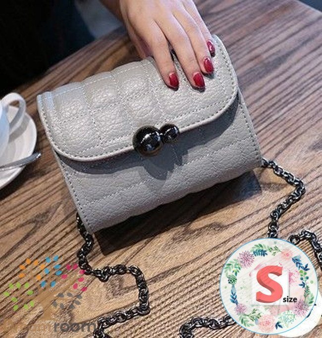 1スタ☆classic キルティングレザー チェーンBAG 【E型 グレー S】クラッチバッグ 革 ハンドバッグ 海外セレブ K-067-5