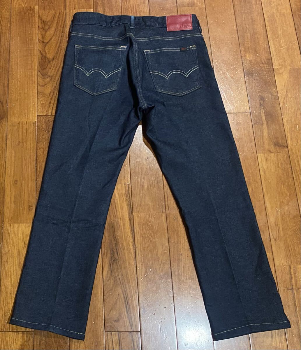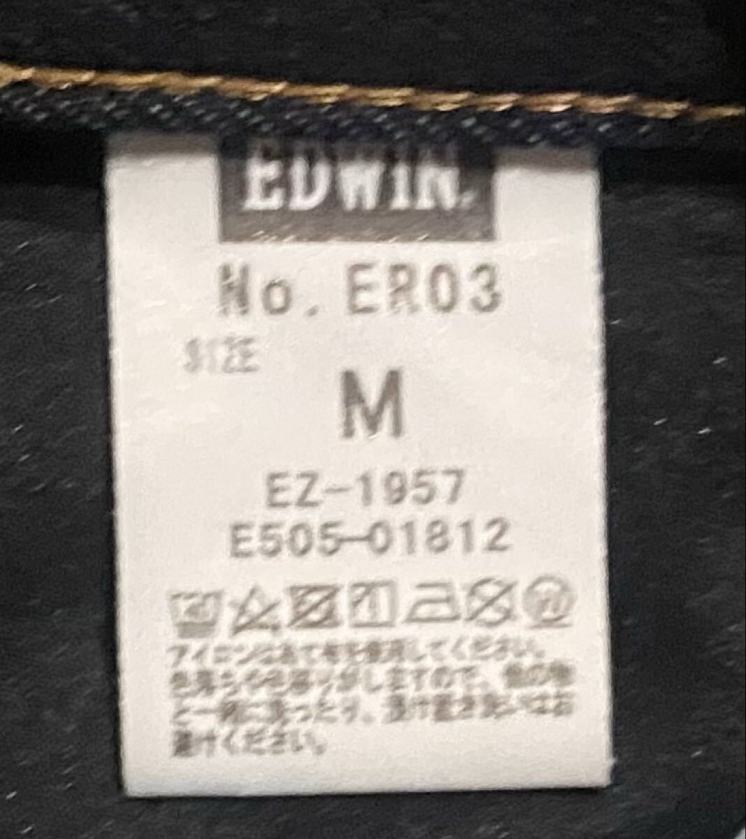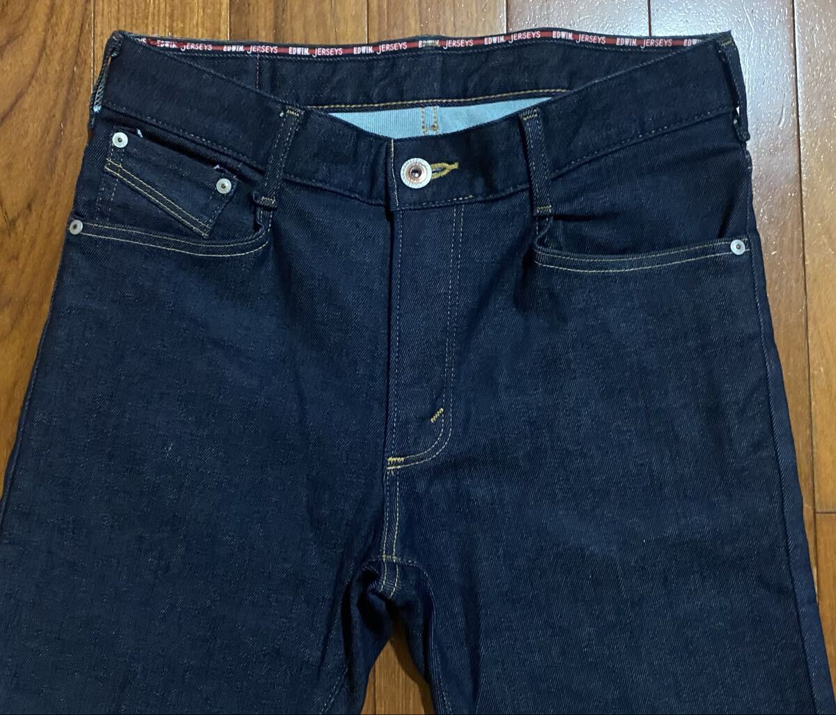 エドウィンのジャージーズ ストレッチデニムパンツ、No.ER03です。色はインディゴブルーです。USEDで裾直ししておりますが状態は良いです(10段階中8程度)。生地は表地はストレッチ入りで綿77%、ポリエステル21%、ポリウレタン2%、ウエストリブはポリエステル95%、ポリウレタン5%です。ジッパーフライです。正規品です((株)エドウイン、日本製)。サイズはMでウエストは重ねずに平置きで約82cm、ヒップ約102cm、股上約27cm、股下約70cm、股下15cmのふともも部分約51cm、裾まわり約40cm、重量約550gです。発送はゆうパケットポストになります。