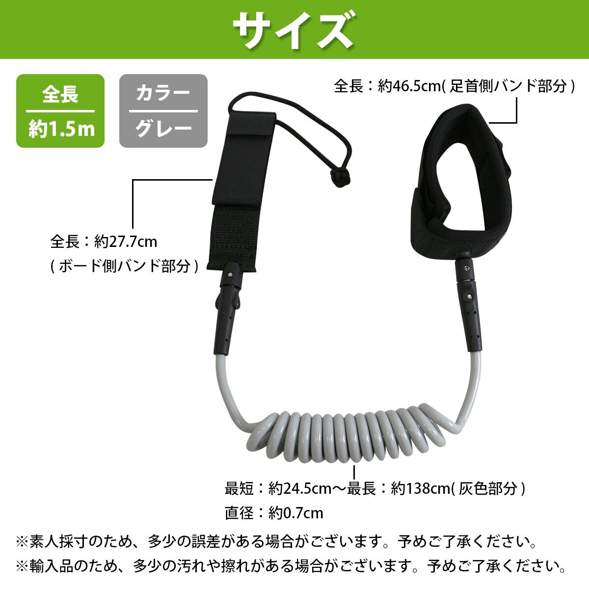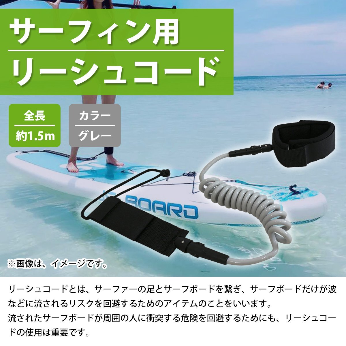 コイル リーシュコード 5ft ダブルスイベル ソフトボード ショートボート サーフボード ボディボード サーフィン アウトドア (グレー)