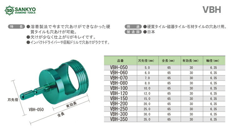 【オススメ】 〈三京ダイヤモンド〉 六角軸VBダイヤドリル 20.0mm VBH-200
