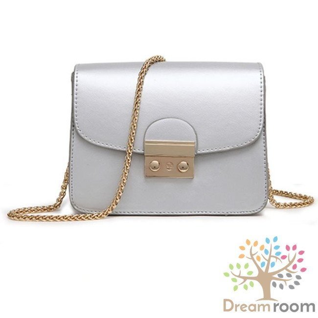 1スタ☆Happycolor レザークラッチバッグ BAG 【シルバー】革 ハンドバッグ ショルダー チェーン 海外セレブ K-069-8