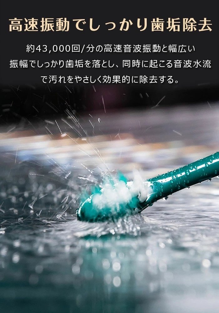 【最大43000回/分の高速音波振動】最大43000回/分の振動で歯ブラシを当てるだけで”つるつる”の仕上がりへ。独自の波型ヘッドが歯間の隅々まで掻き出すように歯垢や食べカスを除去致します。
