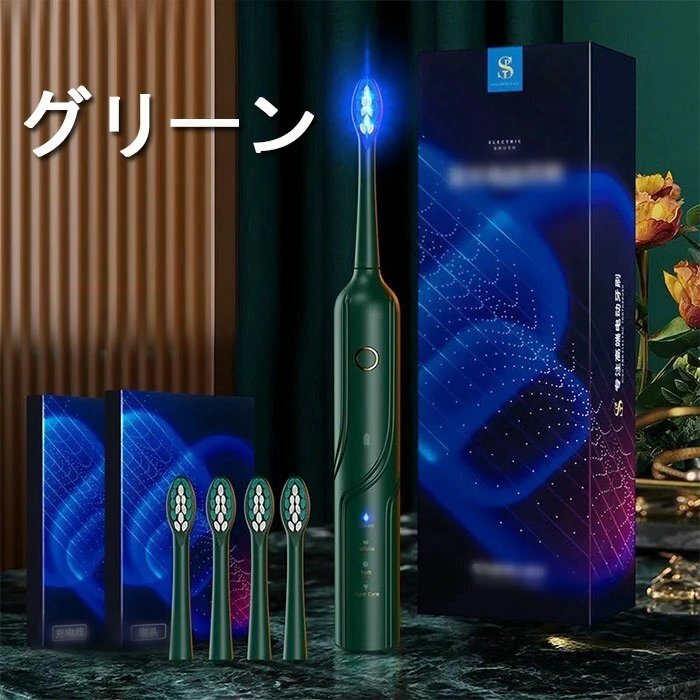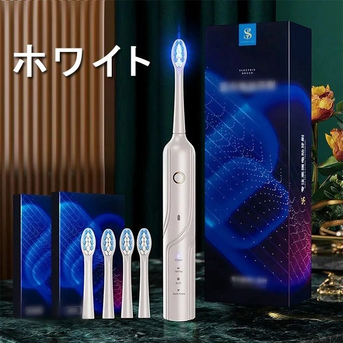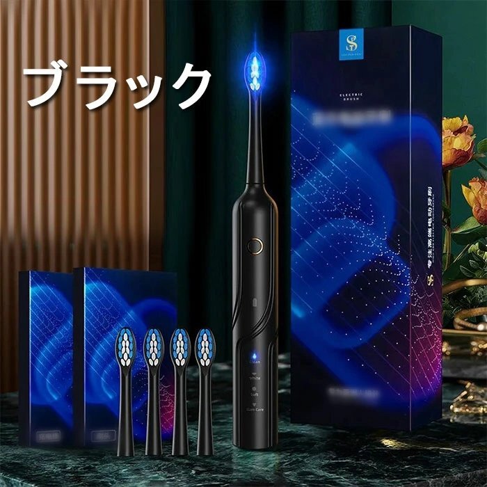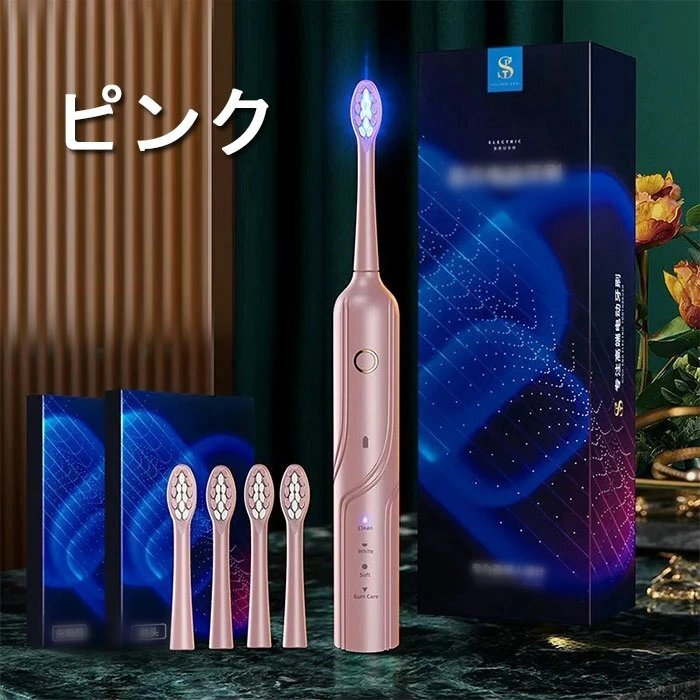 電動歯ブラシ 超音波歯振動ブラシ 替えブラシ4本付き UV除菌機能 4モード 電動歯ブラシ磨き IPX7防水低騒音 スマート歯磨き☆4色選択/1点