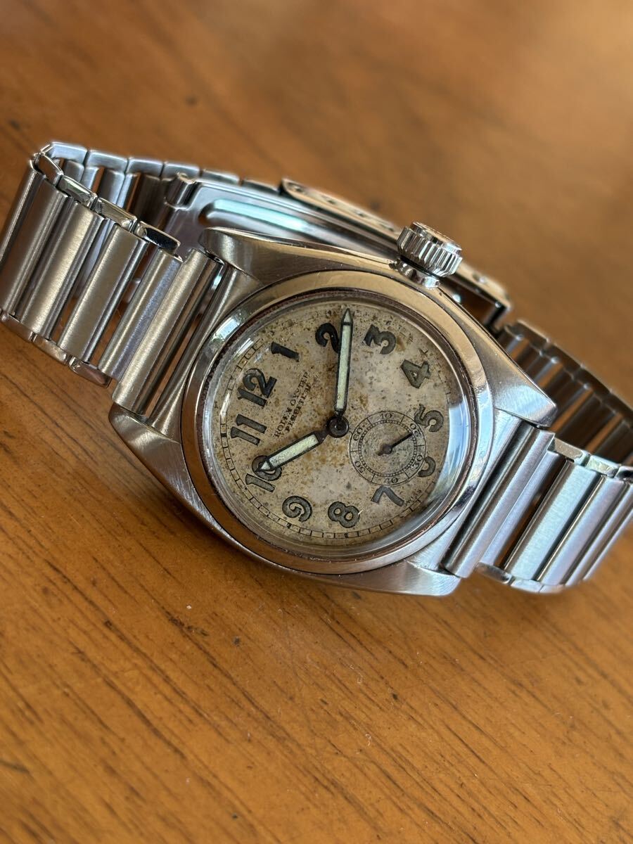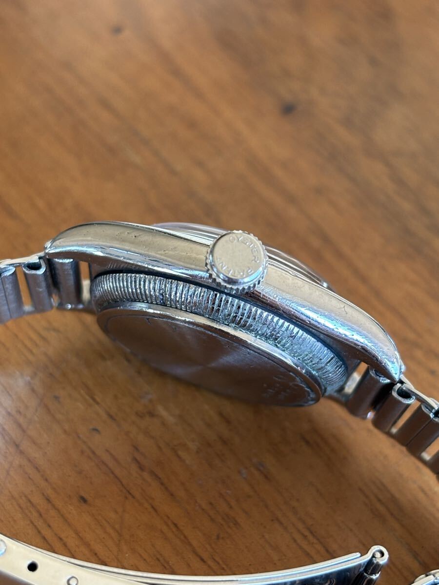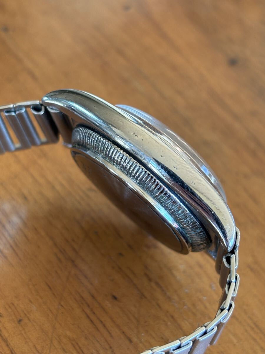 文字盤はベージュにエイジングしており、ロゴが一部消えていますがいい雰囲気です。