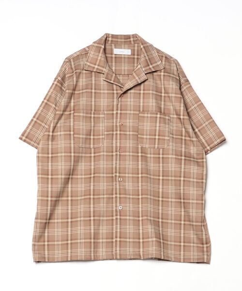 「ADRER」 チェック柄半袖シャツ M ブラウン メンズ