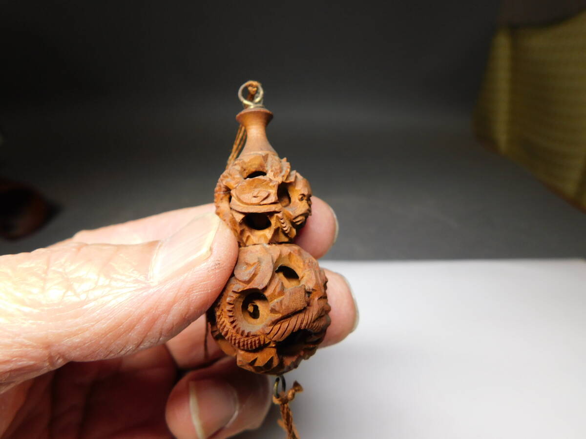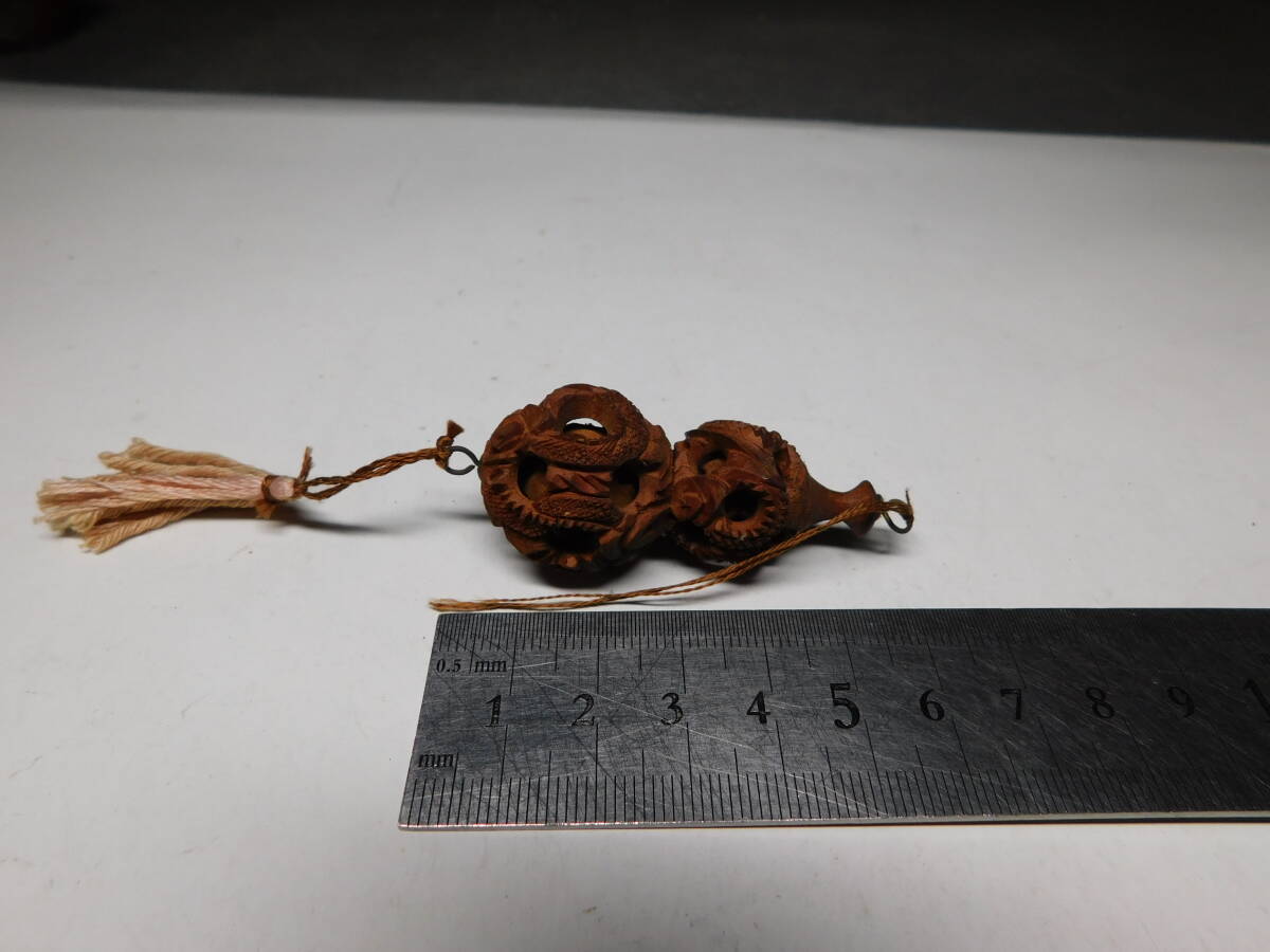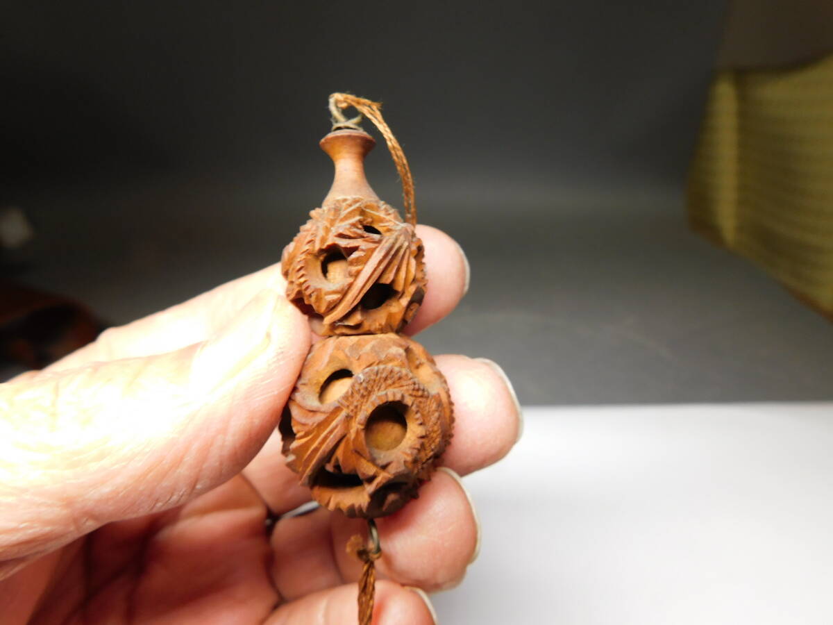 岡黒 稀少 初だし品 時代 木製 透かし彫り瓢箪根付 珍品 売り切り
