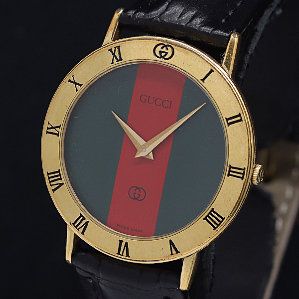 1円 稼働 グッチ 3000M QZシェリーライン メンズ腕時計 4686000 11ANT KMR