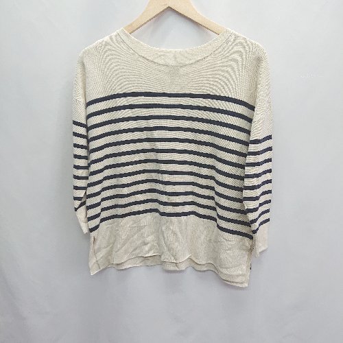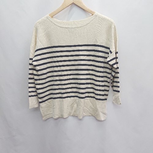 ◇ SHIPS Primary Navy Label ボーダー柄 長袖 ニット サイズ36 ベージュ ネイビー レディース E