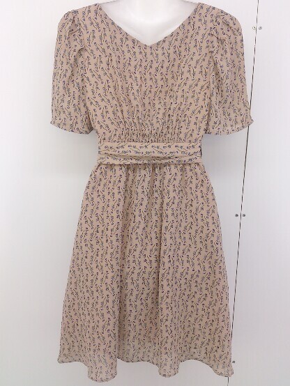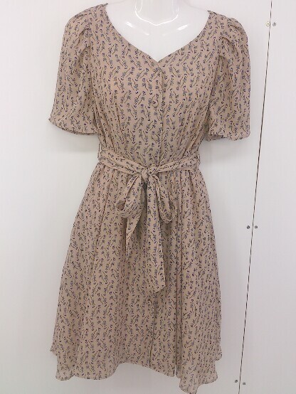◇ ◎ NICE CLAUP ナイスクラップ 総柄 半袖 膝丈 ワンピース サイズF ベージュ レディース