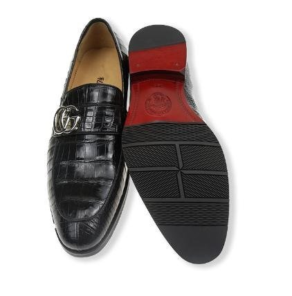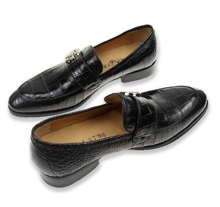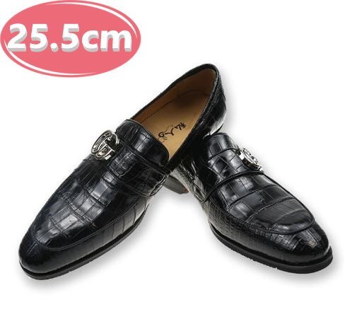 クロコダイルレザー ビジネスシューズ 最高級 ワニ革 クロコダイル 靴 メンズシューズ 革靴 ブラック 25.5cm 【n783】