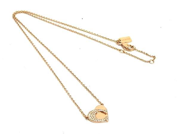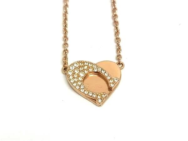 ■美品■ COACH コーチ シグネチャー ハート ラインストーン ネックレス ペンダント アクセサリー ピンクゴールド系 DK1928