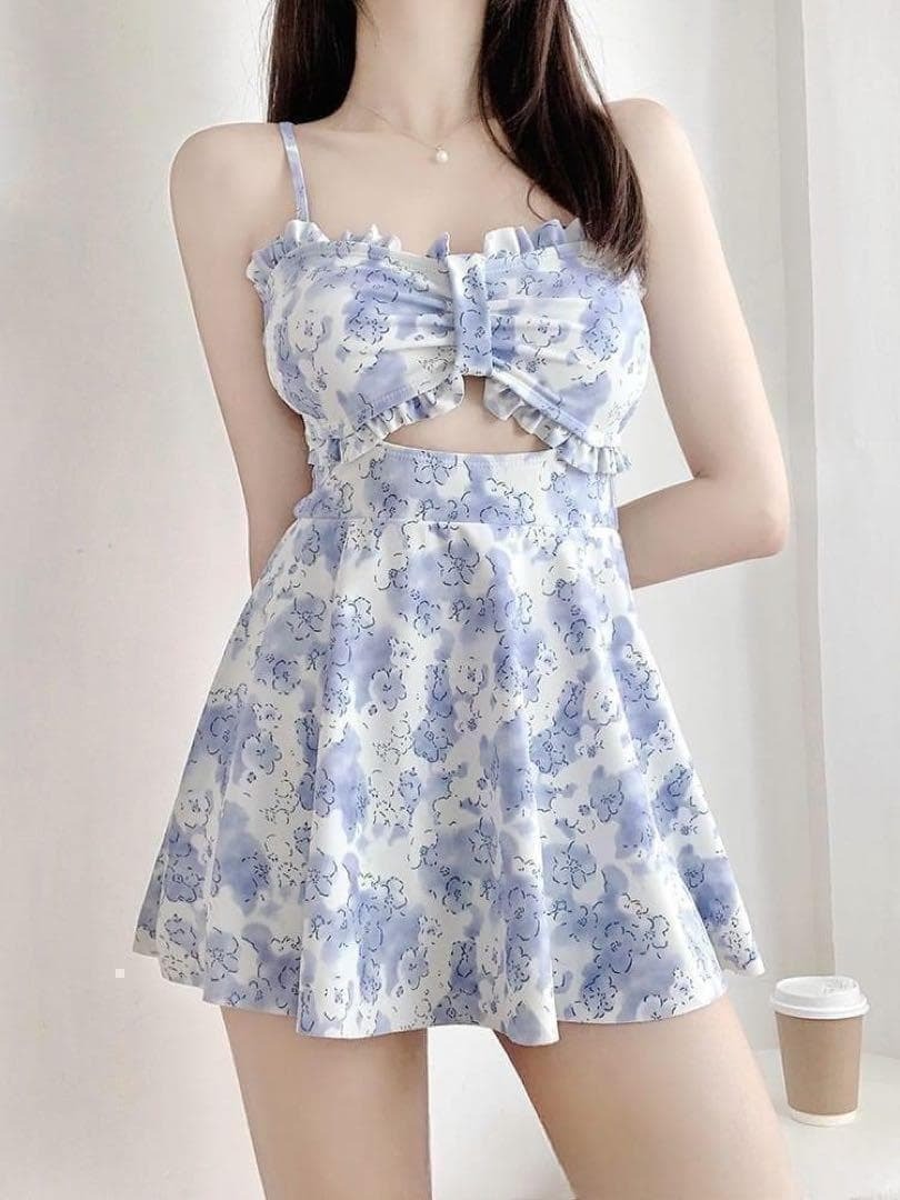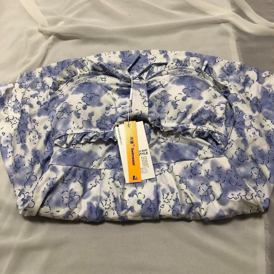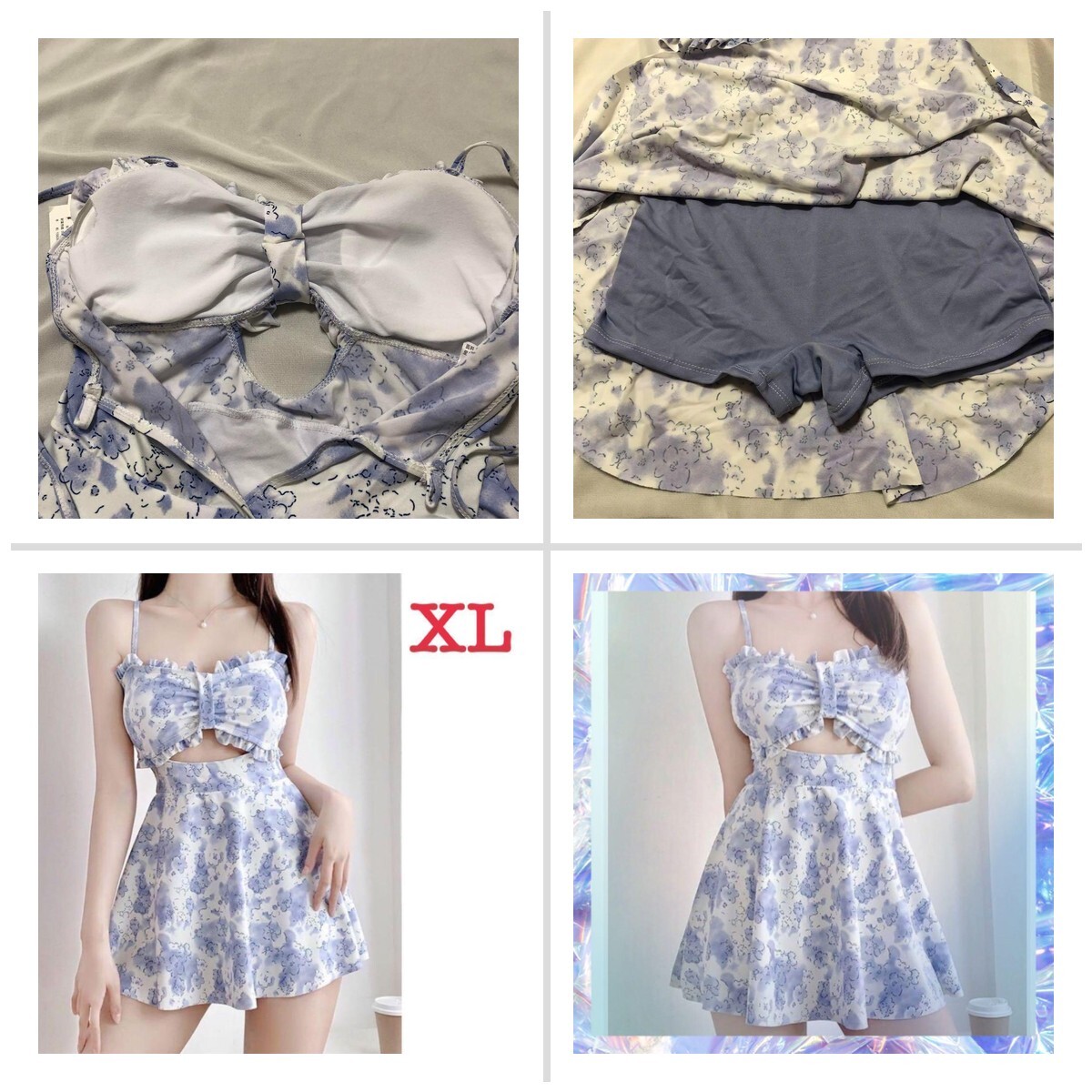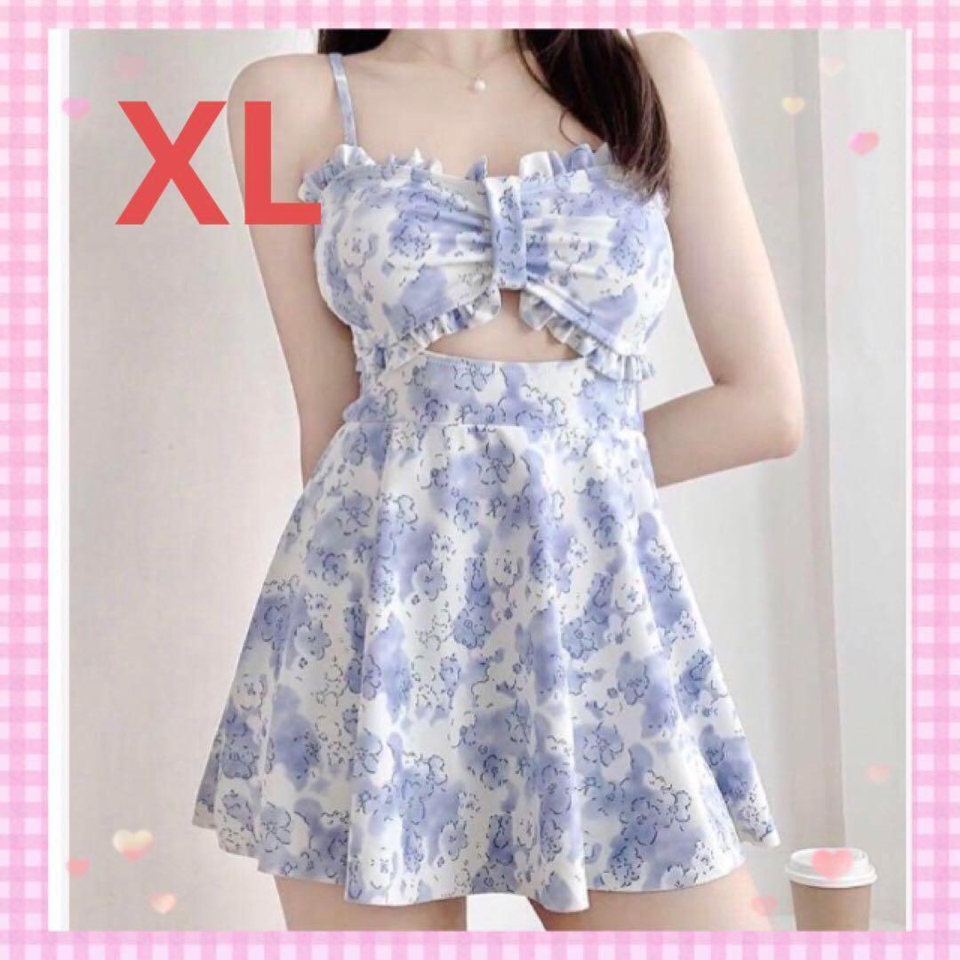 パステルブルー 花柄 水着【XL】ワンピース フラワー c 体型カバー 27D238