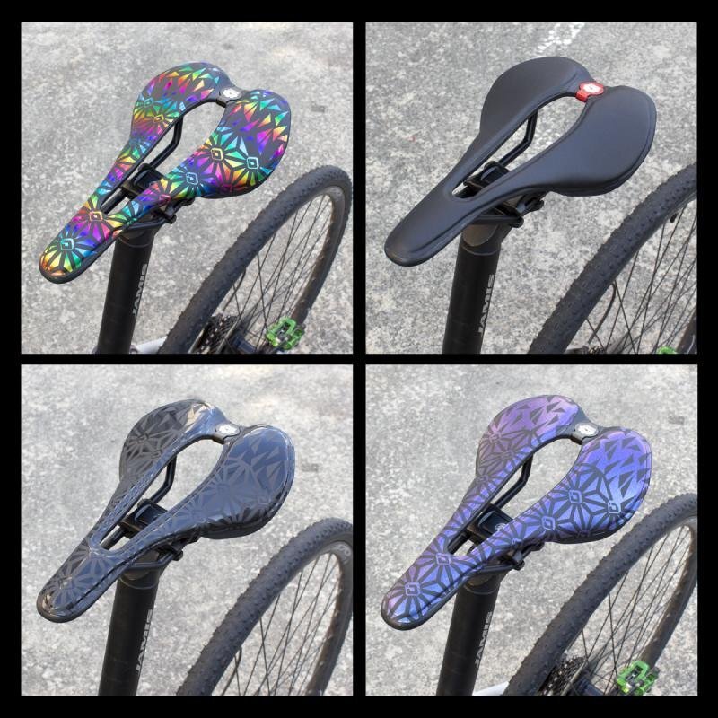 突出した個性を発揮できる超軽量サドル。 車体の軽量化に最適な超軽量モデル スタイリッシュですっきりした形状です。また軽量なサドルはダンシング時の振りが楽に。 ロードバイクやクロスバイク、mtb、ミニベロ、ピストバイクなどの自転車に最適です。 人間工学に基づいた適度なクッションと形状で、ロングライドでもお尻が痛くなりにくい。 [サドル座面にもこだわり] 耐摩耗性、滑り止め防水マイクロファイバー サドル表面の生地にマイクロファイバーを使用 ズレによるストレスやペダリングを安定させるために滑る止め加工を施しています。 [穴あきサドル] 通気性が良い中空デザイン。軽くて通気性に優れた設計で長距離サイクリングでの熱の籠りを抑え快適さを持続。 尿道への圧迫感を軽減し空気の流れをつくり快適に。 人間工学に基づいた適度なクッションと形状で、ロングライドでもお尻が痛くなりにくい。 [人間工学に基づいた設計] フロントがスリムなデザインと人間工学に基づいた設計は、足と太ももの摩擦を防ぐことができ ペダリングをスムーズにします。 [超軽量でスタイリッシュ] 軽量なのに優れた耐衝撃性と最大強度を備えています。 山岳レースなど軽量化に最適なサドル [個性的な柄] 他にはないような柄デザイン。 人気のオイルスリックや華やかなレインボー柄。 大人なマットブラックや定番のブラックなど幅広いデザインから選べます。 サドル寸法長L250× 幅W146mm / 平均厚み50mm(レール込)/ レール径φ7mm 重量約188g 材質マイクロファイバーPUレザー、クロモリレール、ナイロン底部 色指定不可、ノークレームノーリターン | |