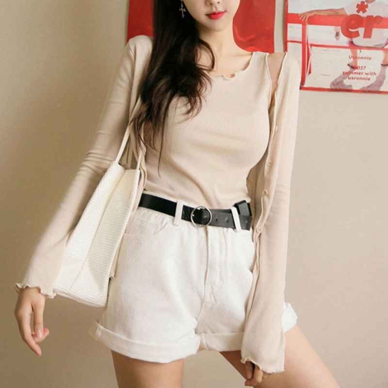 ハイウエスト デニムショートパンツ レディース 夏 ベルト付き ショーパン XL ブラック