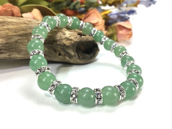 こちらは、10mm玉のアベンチュリンを使用したパワーストーンブレスレットです。間にはロンデルを挟み高級感あるブレスレットに仕上げています。石大きさは腕にも馴染みやすいように10mm玉を使用して、サイズは内径約18cmです。(サイズ調節も無料で承っています。サイズ変更の場合は落札後、取引ナビにてご一報くださいませ。) 数に限りがございますので気になる方はお早めにどうぞ。