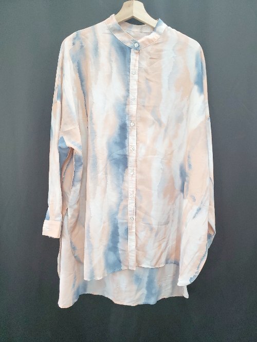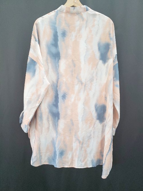 ◇ ⊂ antiqua patterntorso パターントルソ 水彩柄 長袖 シアー シャツ サイズF オレンジ系 マルチ レディース E