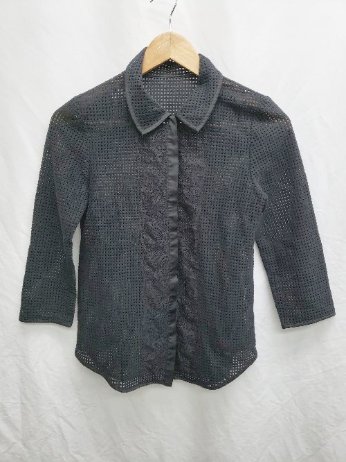 ◇ ⊂ JILL STUART ジル スチュアート メッシュ風 透け感 七分袖 シャツ ブラウス サイズS ブラック レディース P