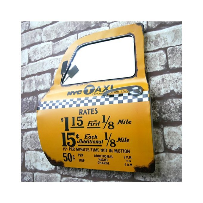 アメリカンレトロ ドア型プレート ブリキ アメリカ雑貨 壁掛け TAXI タクシー 鏡付き BZ-247