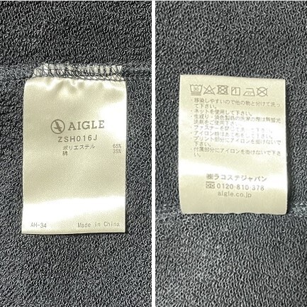 ボディに使われているスウェット生地は、"ポリエステル 65%、コットン 35%"の混紡生地です(画像9左)