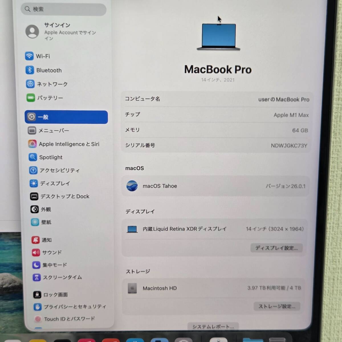 ディスプレイ:14.2インチ Liquid Retina XDR(3024×1964)