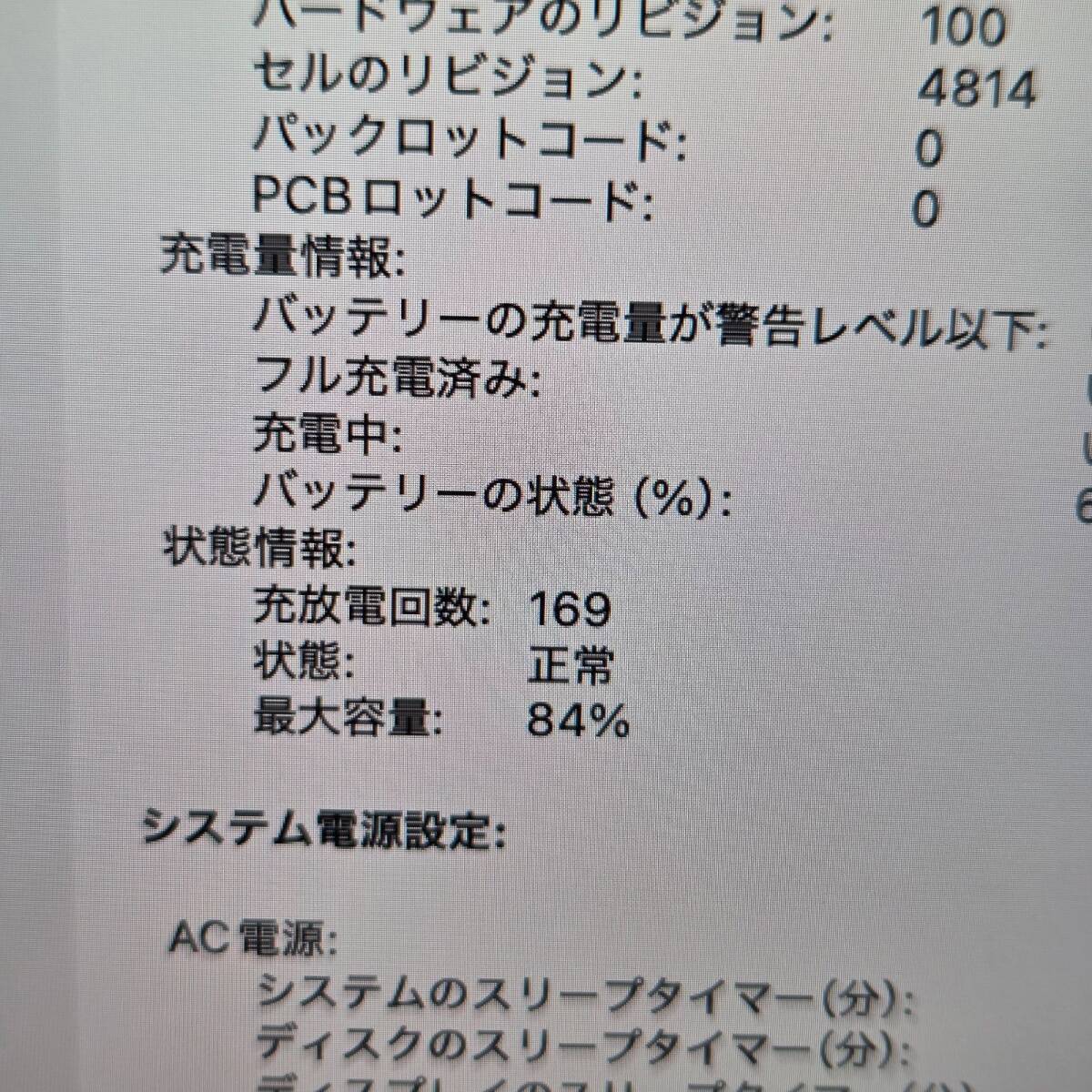 バッテリー最大容量:84%