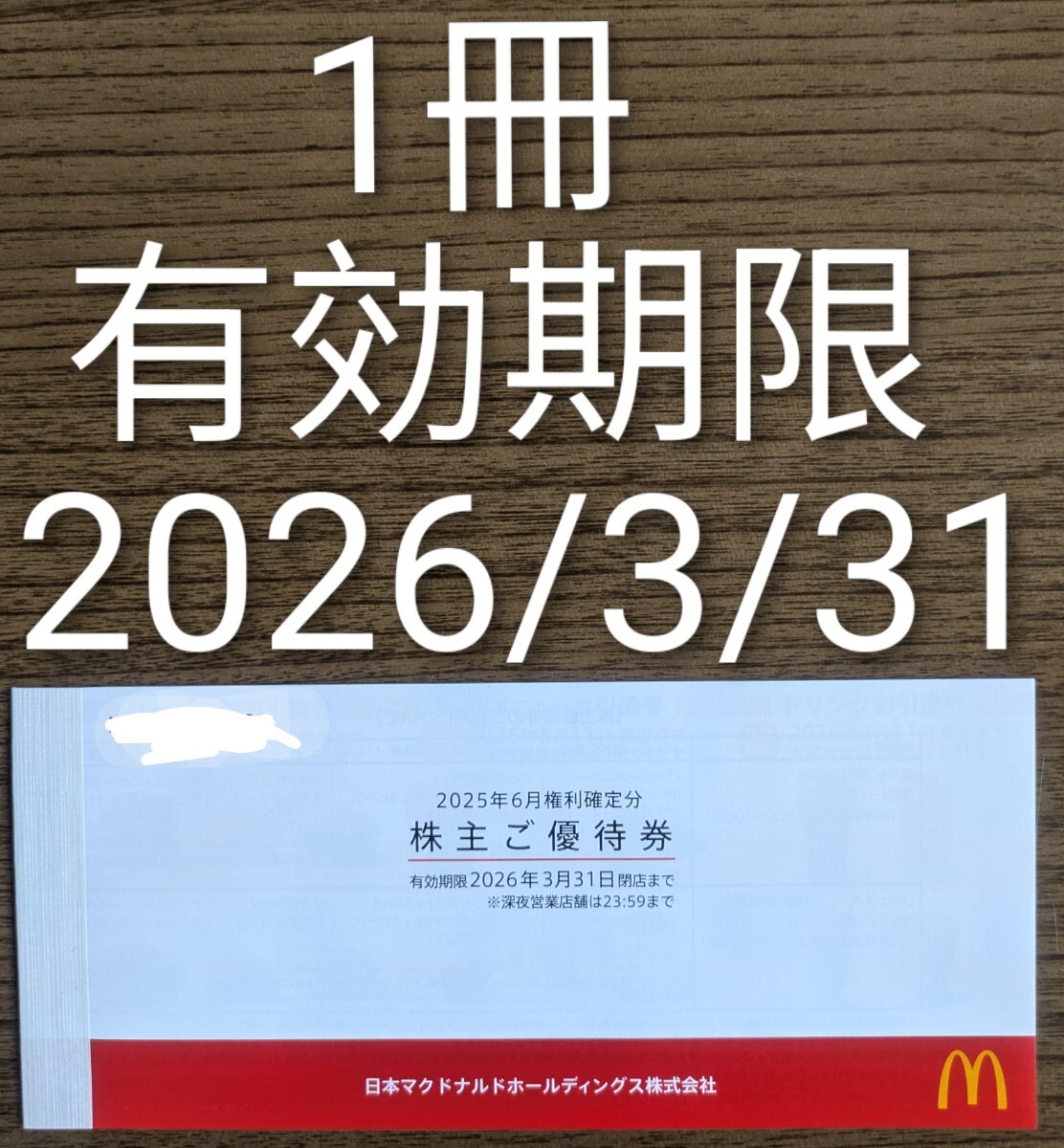 マクドナルド 株主優待券 1冊 ハンバーガー、サイド、ドリンク 各6