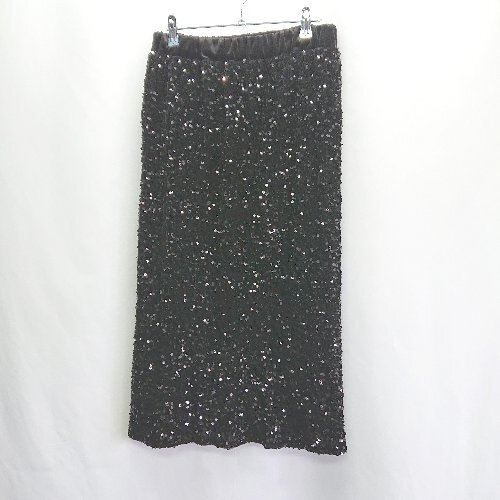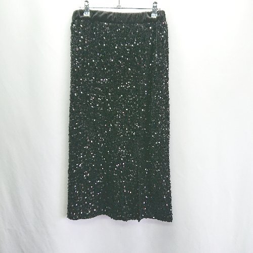 ◇ MYINE センタースリット 裏地あり ウエストゴム ロング丈 タイト スカート サイズ表記なし ブラック レディース E