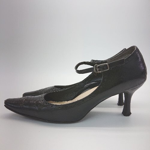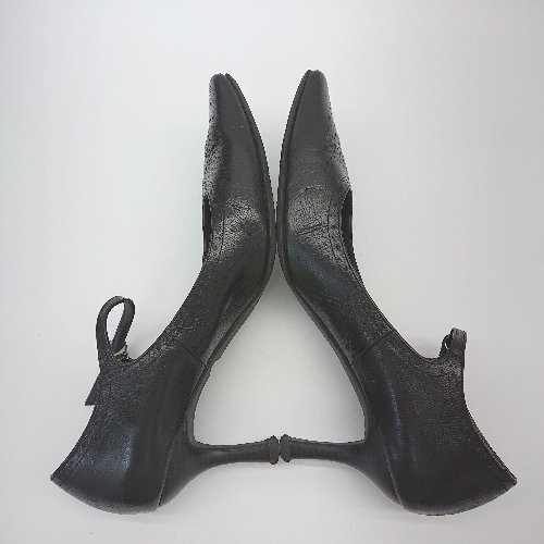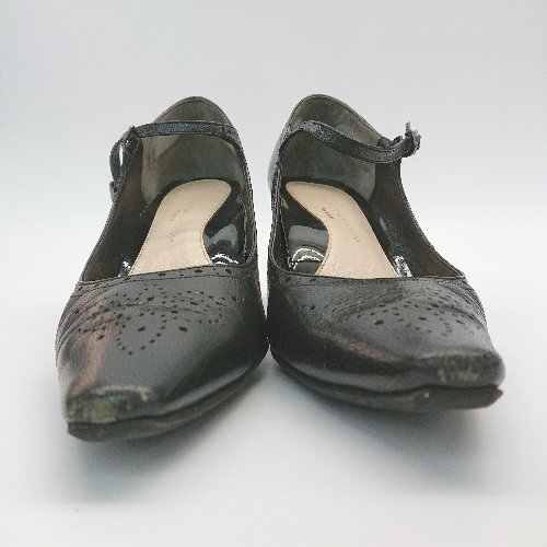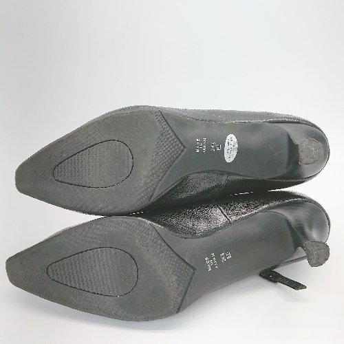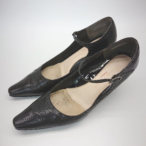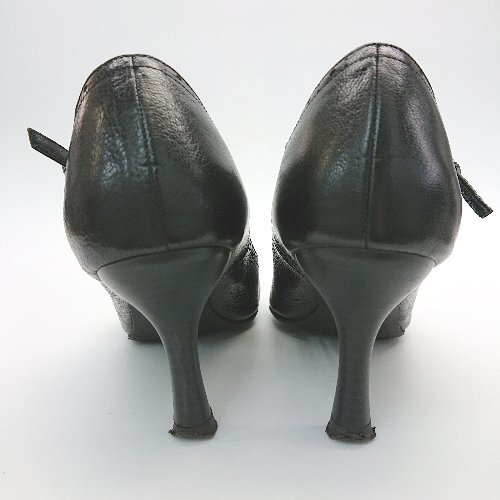 ◇ NEO RHYTHM ハイヒール ピンヒール ポインテッドトゥ フロント ストラップ パンプス 24.5cm ブラック 女 E