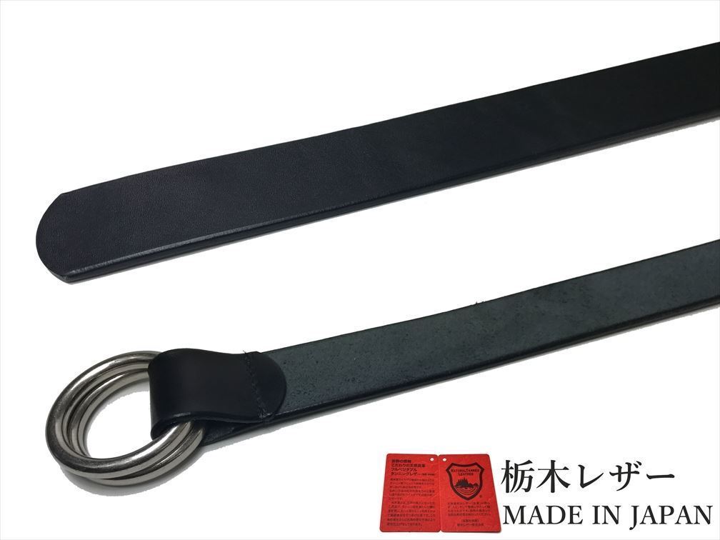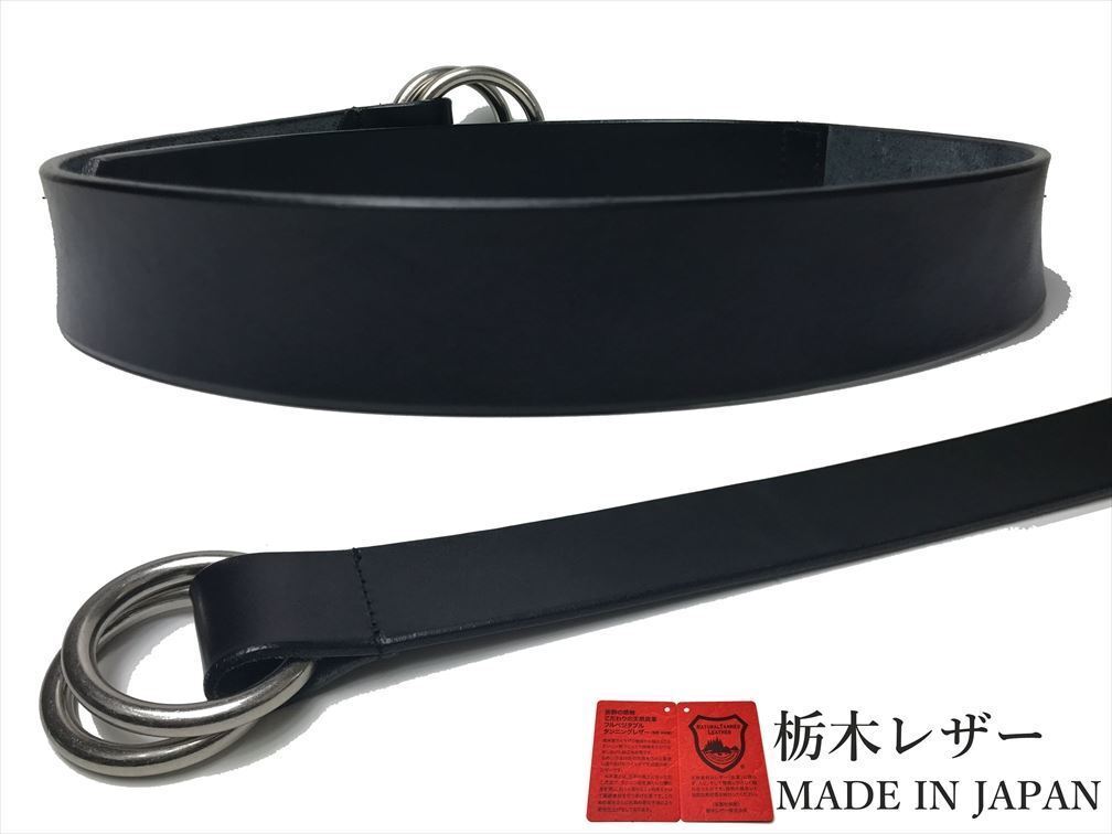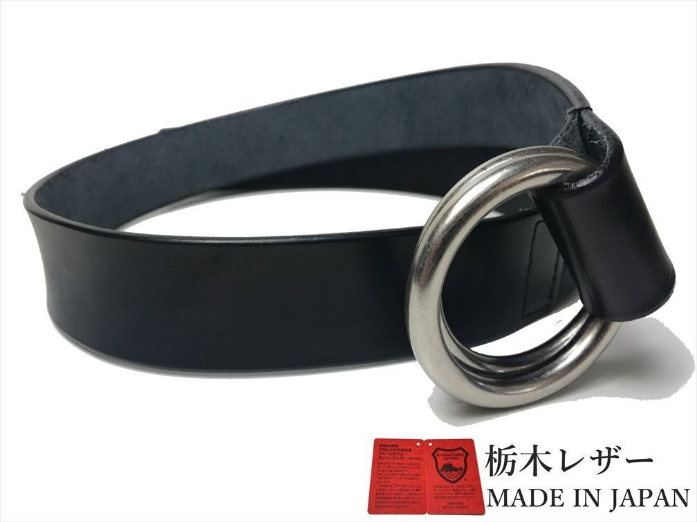新品 ロングサイズ 栃木レザー Wリングベルト 日本製 カジュアル 本革 黒 ブラック ベルト 牛革 メンズ 国産 無地 一枚革 40mm w001-L-BK