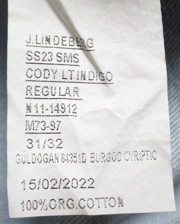 新品 J.リンドバーグ/J.LINDEBERG CODY フラット インディゴ レギュラー ジーンズ 定価26400円/31-32/FMDP07662/レターパック\600/ブルー
